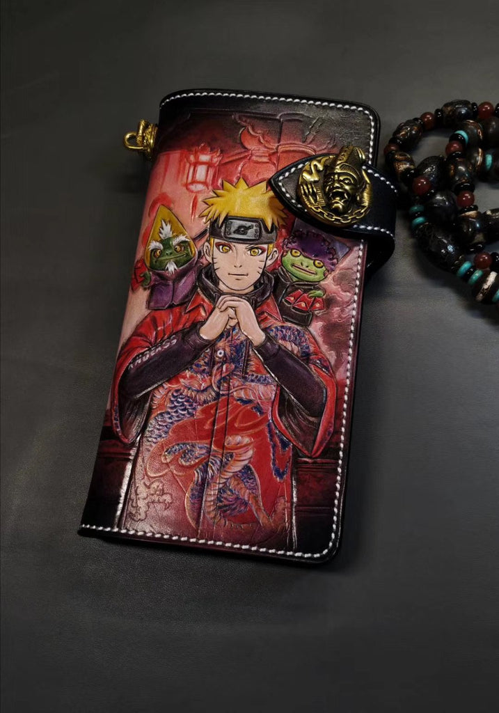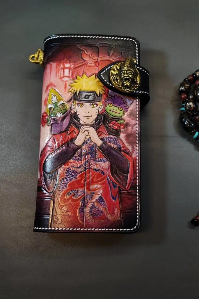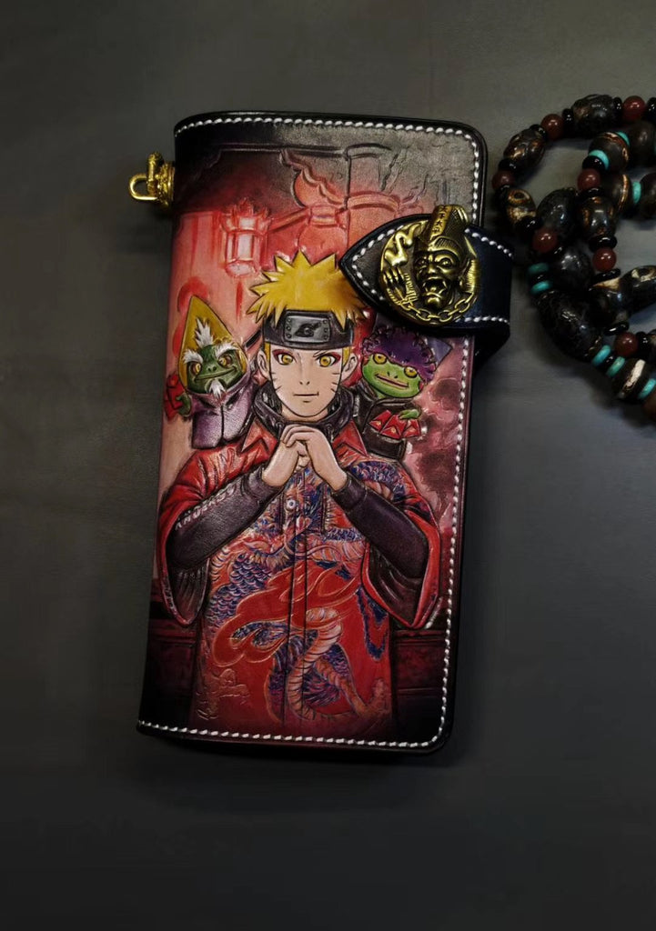 Style: Badass Black Leather Men's Naruto Long Biker Wallet Handmade Tooled Zipper Long Wallets For Men
