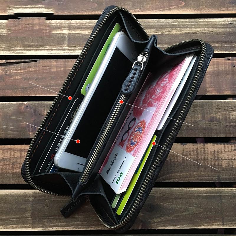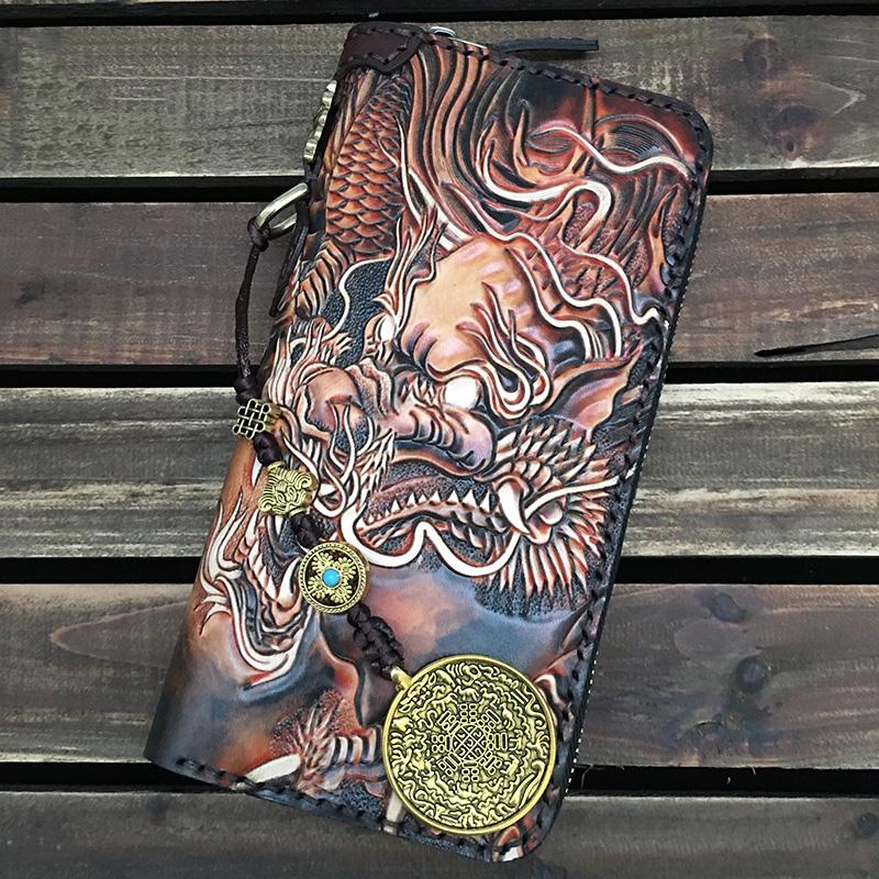 Style: Black Handmade Carp Toad Tooled Leather Long Biker Wallet Black Chain Wallet Clutch Wallet For Men