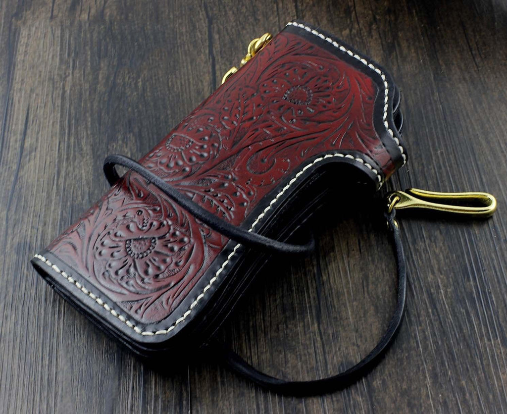 Style: Handmade Tooled Leather Men's Biker Wallet Motorcycle Wallet Long Wallet with Chain For Men