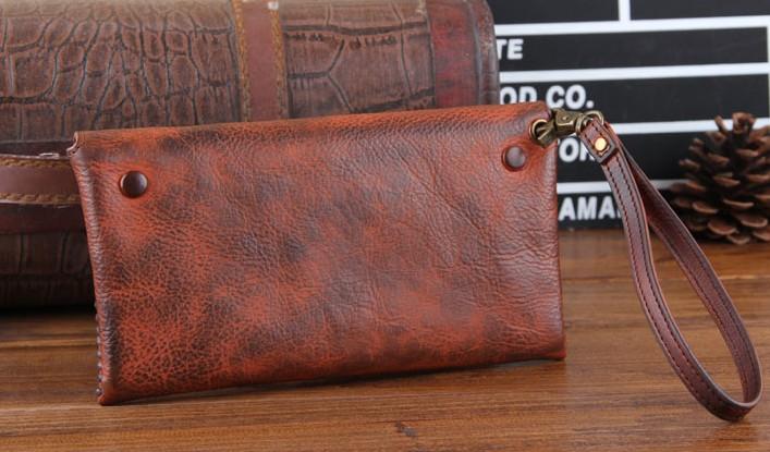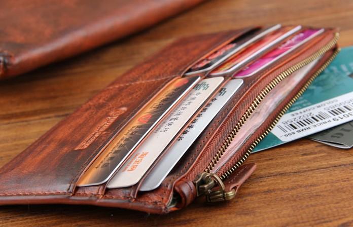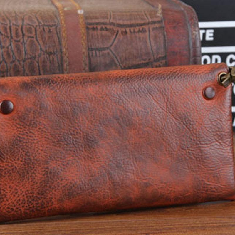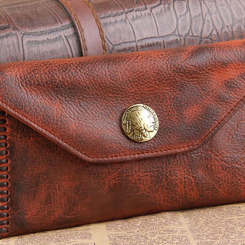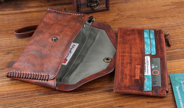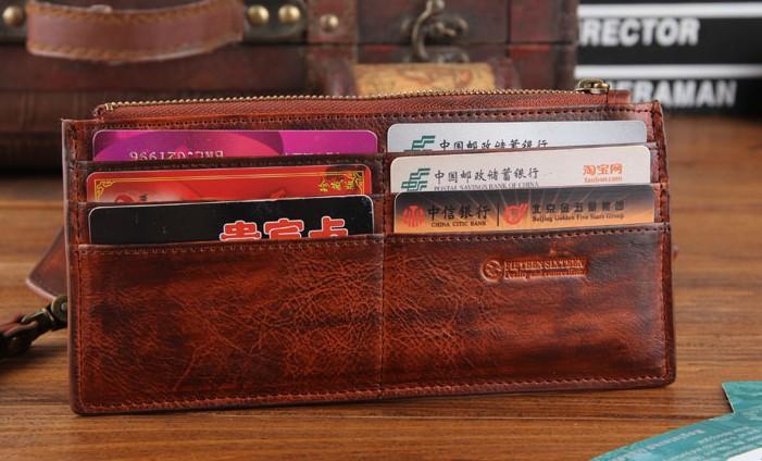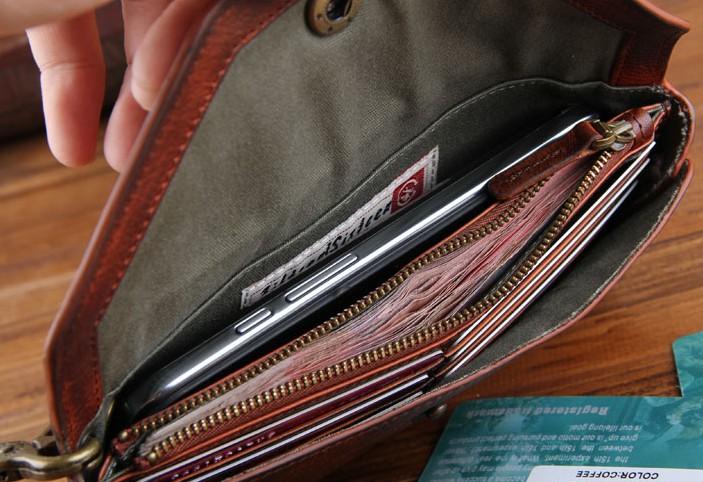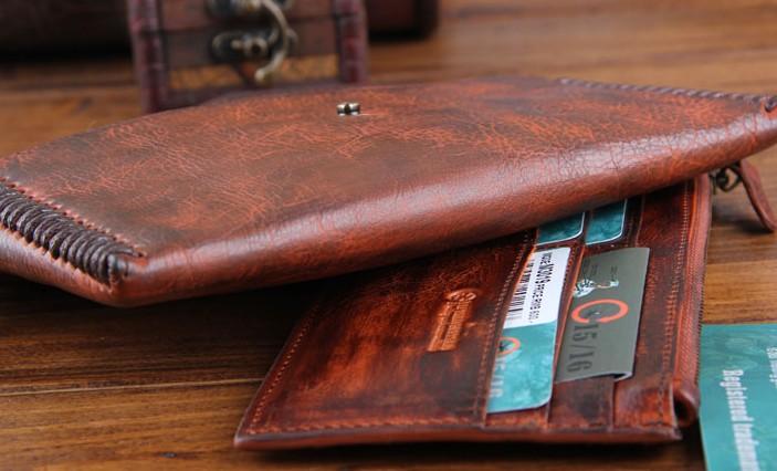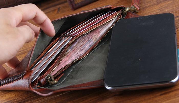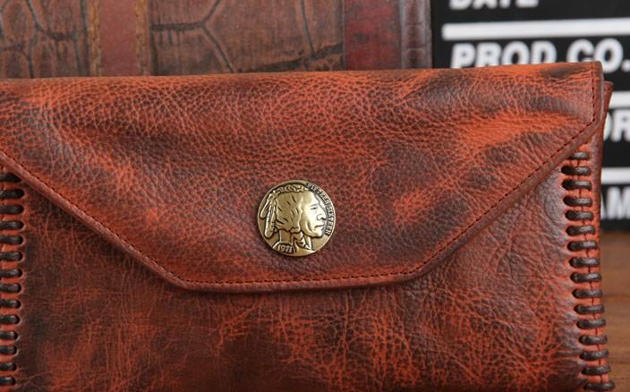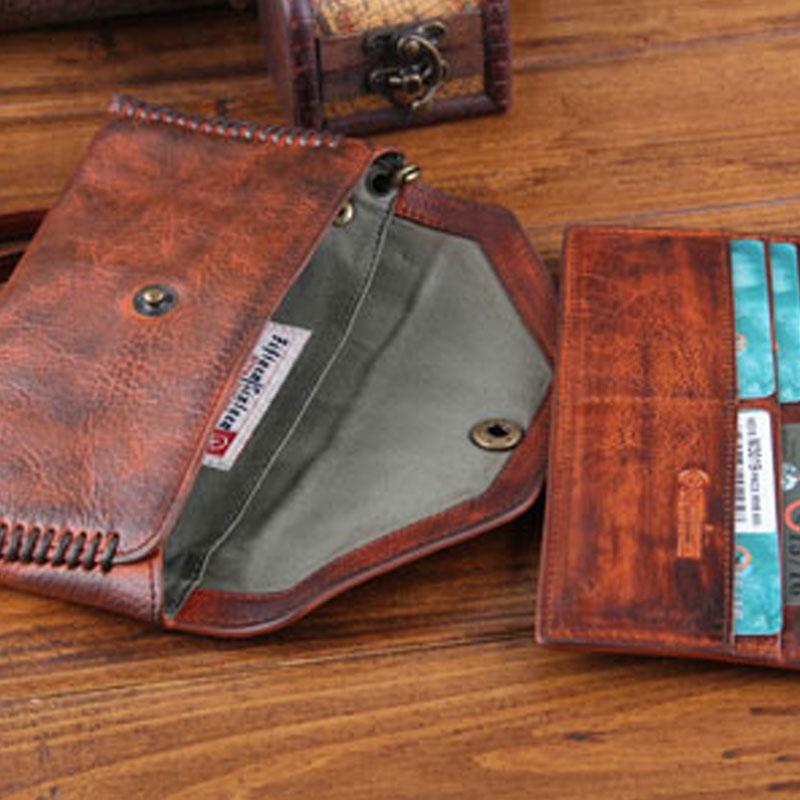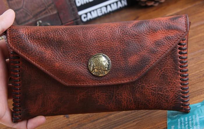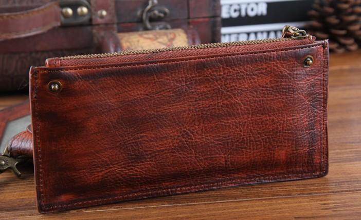 Design: Genuine Leather Mens Cool Biker Chain Wallet Long Leather Wallet Slim Clutch Wristlet Wallet for Men