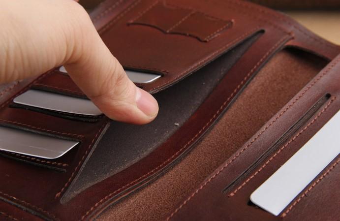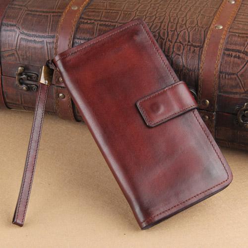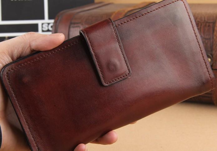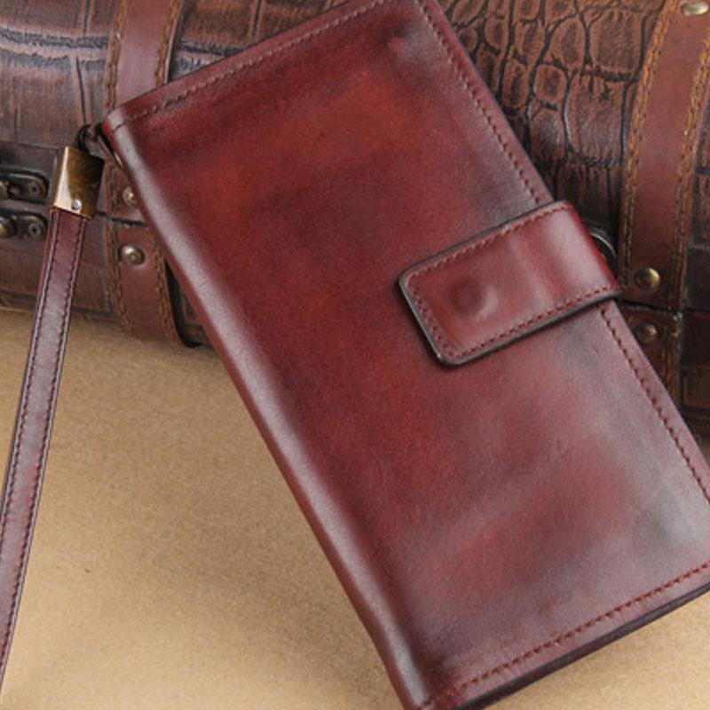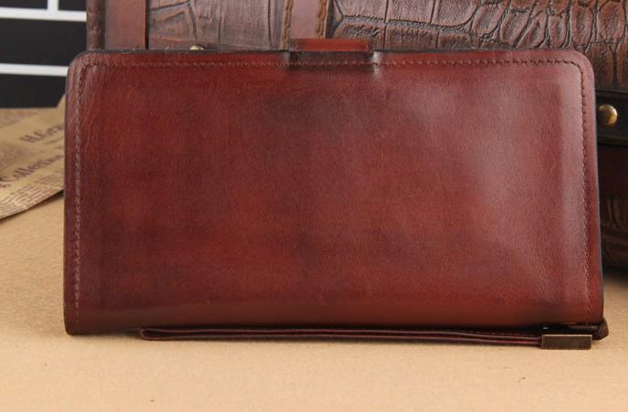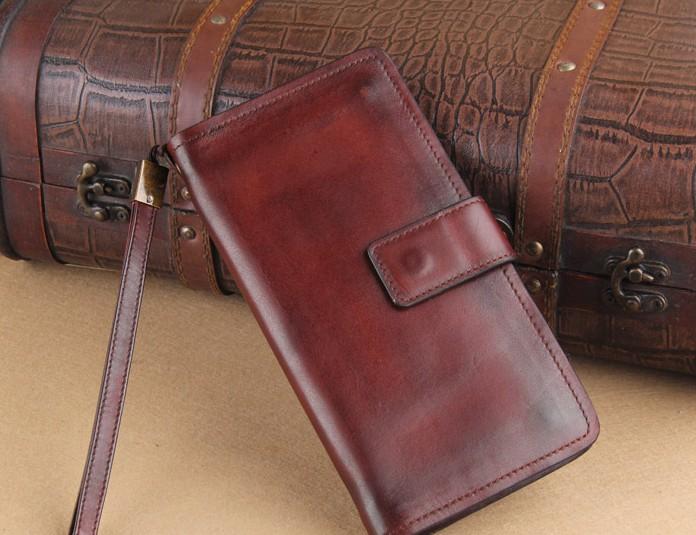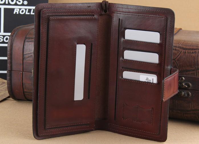 Design: Genuine Leather Mens Cool Biker Chain Wallet Long Leather Wallet Slim Clutch Wristlet Wallet for Men