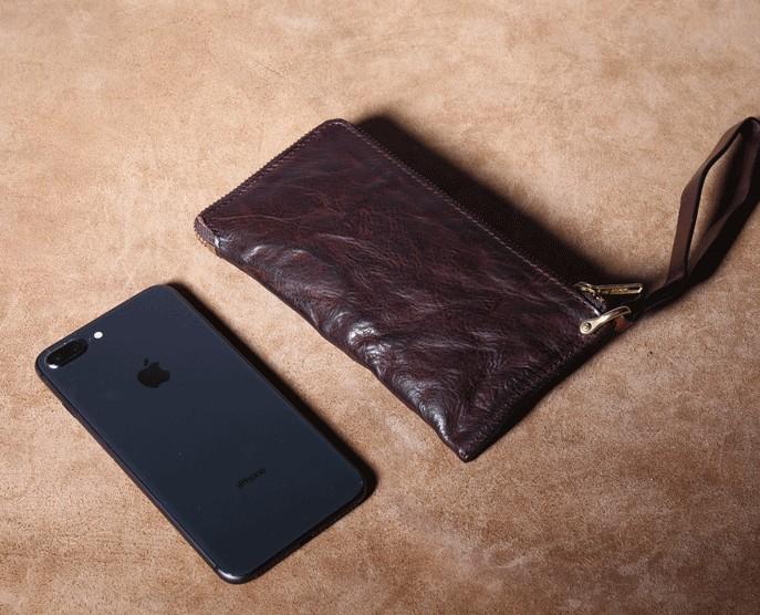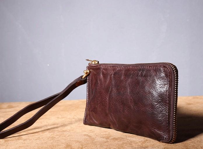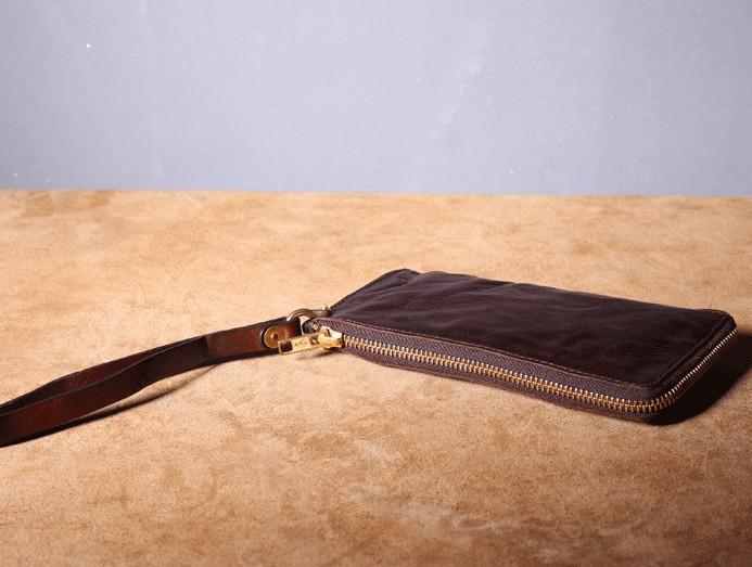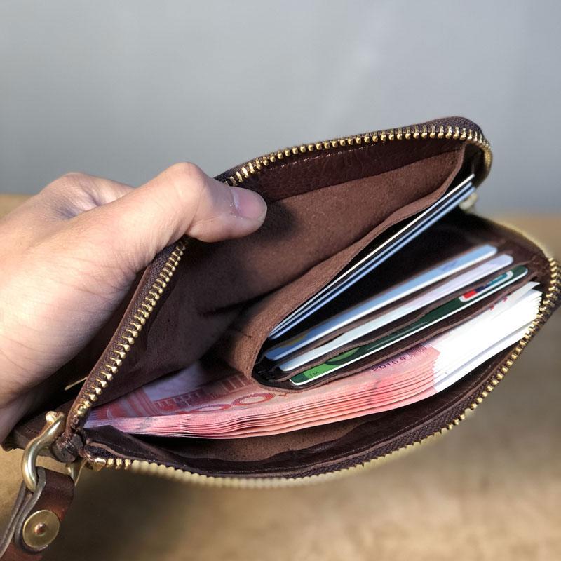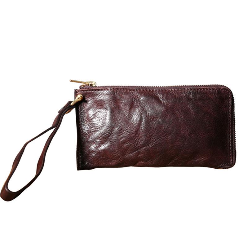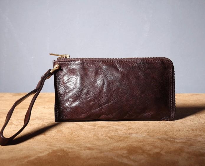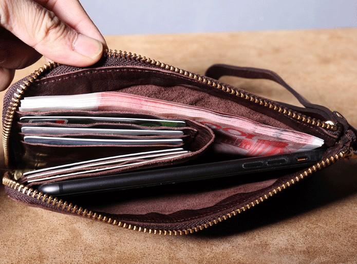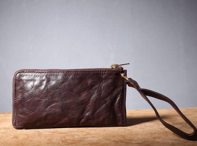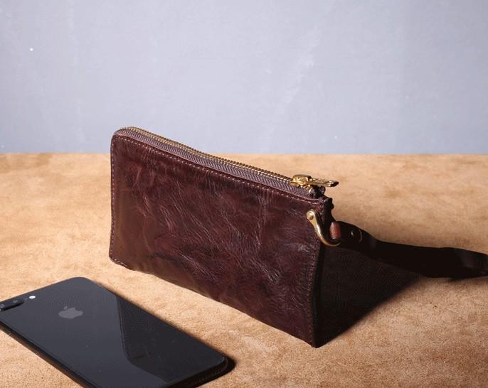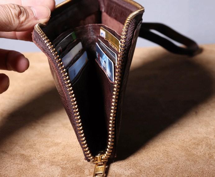 Design: Handmade Genuine Leather Mens Cool Biker Chain Wallet Long Leather Wallet Slim Clutch Wristlet Wallet for Men