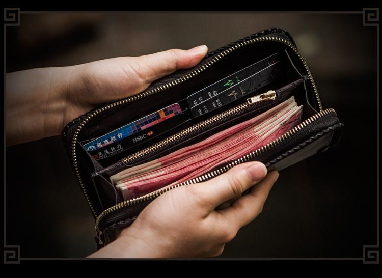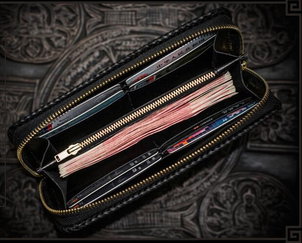Slots: 2 full size bill slot, 8 card holders, 1 zipper slot