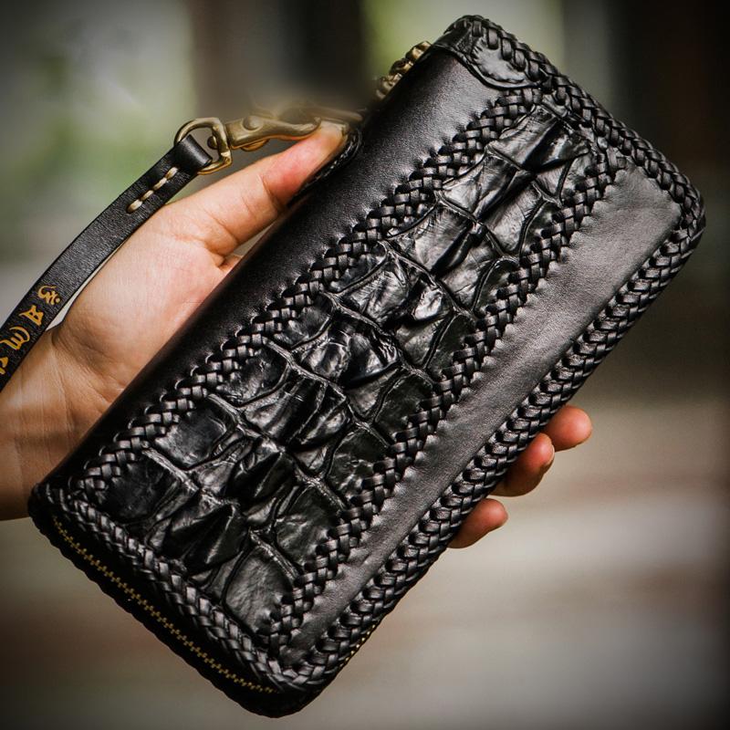 Design: Handmade Leather Tibetan Mens Chain Biker Wallet Cool Leather Wallet Long Clutch Wallets for Men