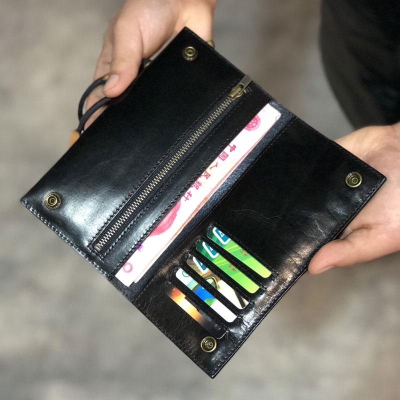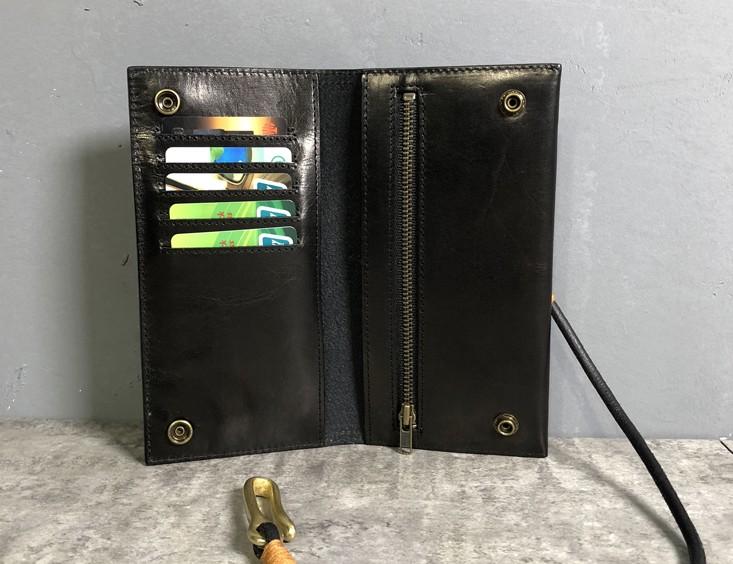 Design: Handmade Leather Mens Cool Long Leather Wallet Biker Wallet Clutch Wallet for Men