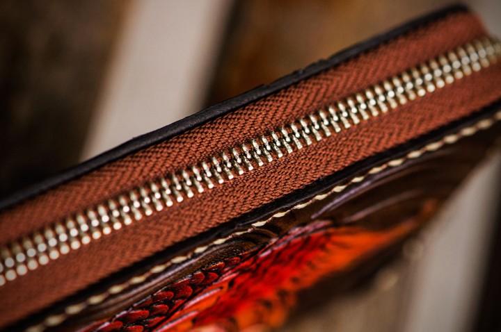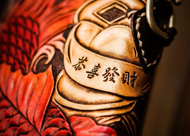 Design: Handmade Leather Tooled Carp Mens Chain Biker Wallet Cool Leather Wallet Long Phone Wallets for Men