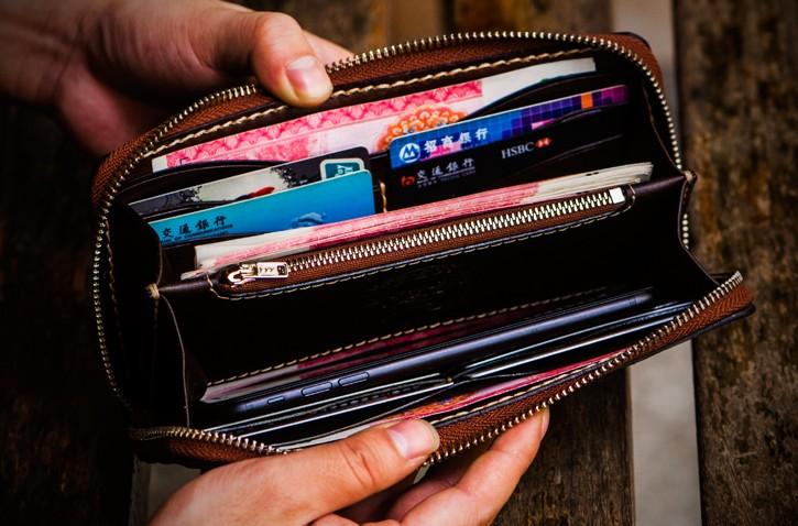 Slots: 2 full size bill slot, 8 card holders, 1 zipper slot, 1 phone slot