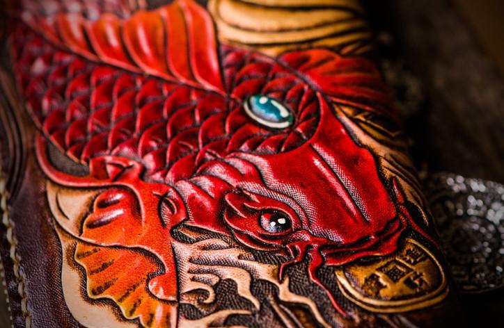 Style: Handmade Leather Tooled Carp Mens Chain Biker Wallet Cool Leather Wallet Long Phone Wallets for Men and it should last a life time