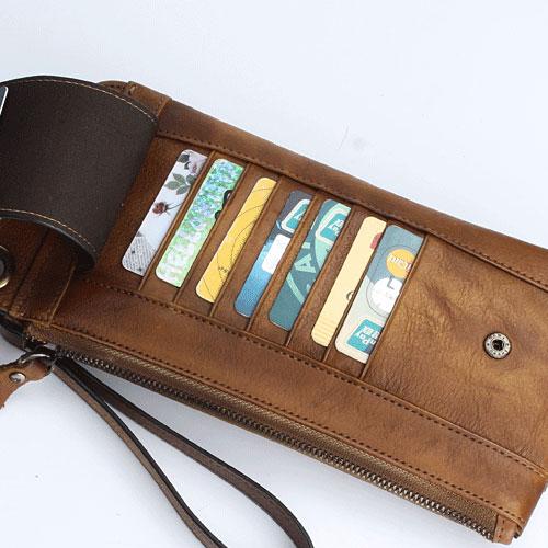 Slots:?2?full size bill slots,?7 card holders, 1 phone slot,1 zipper slot