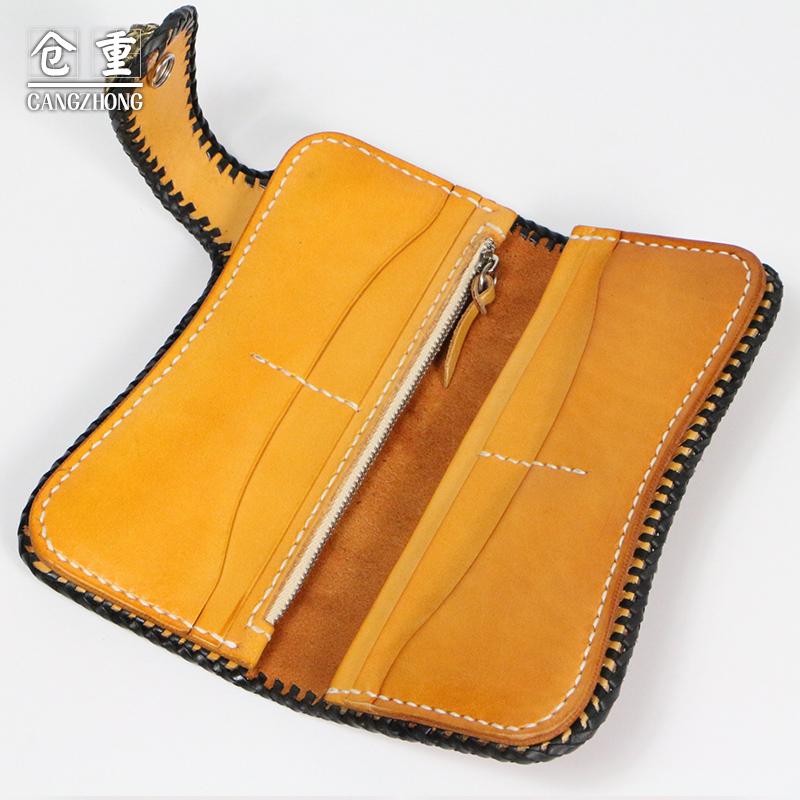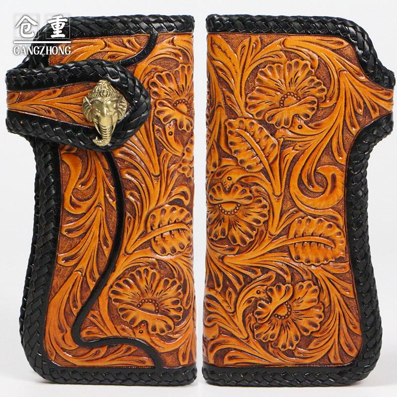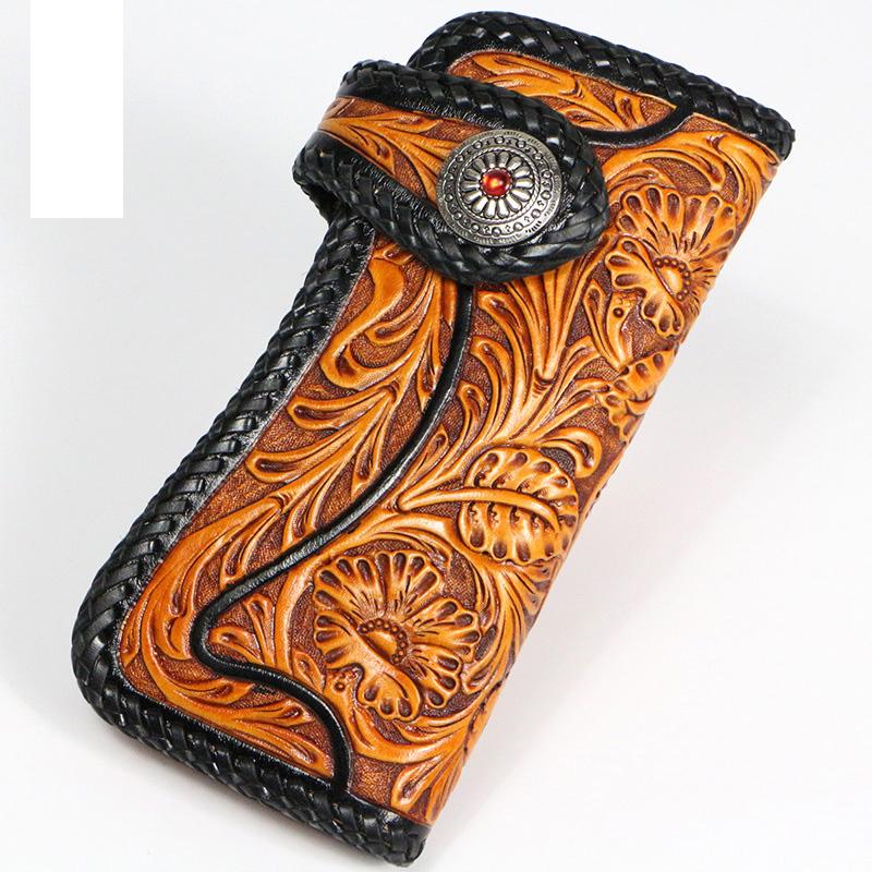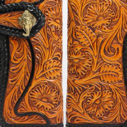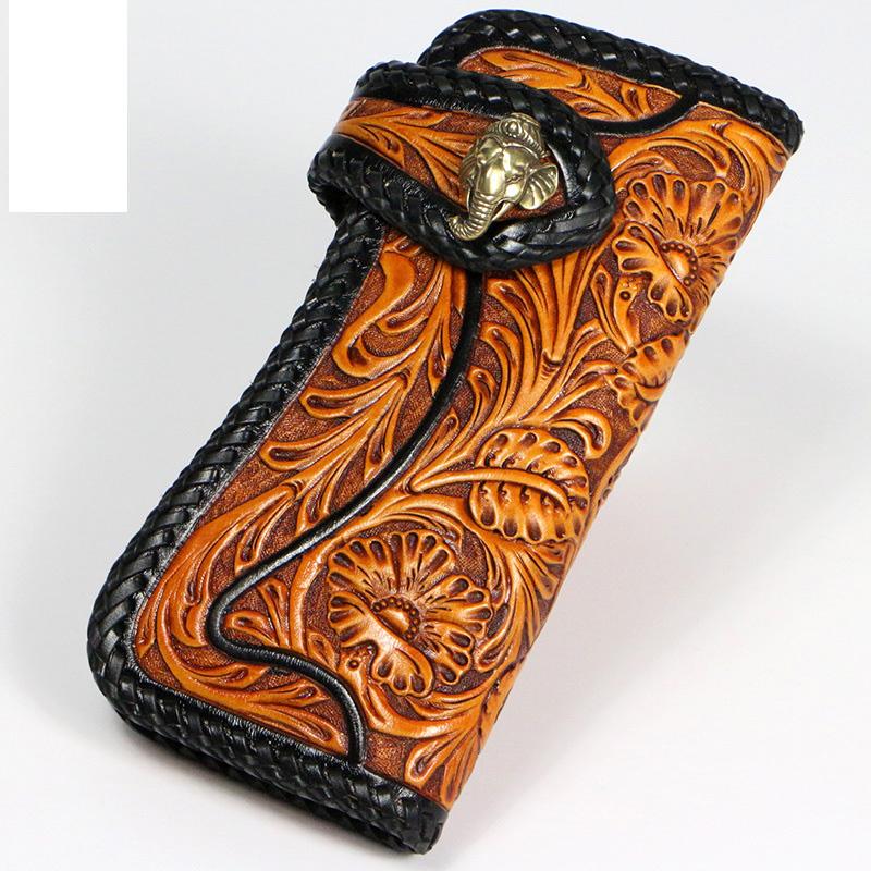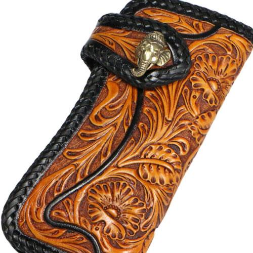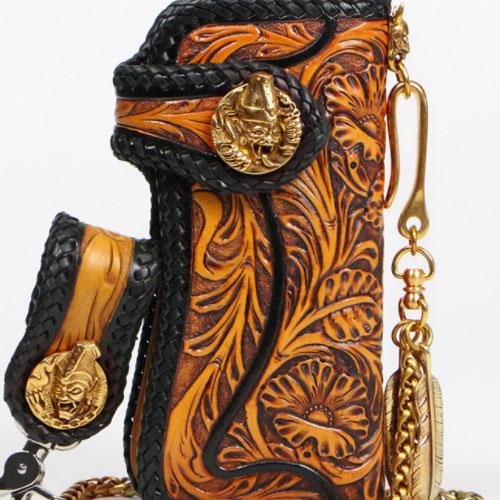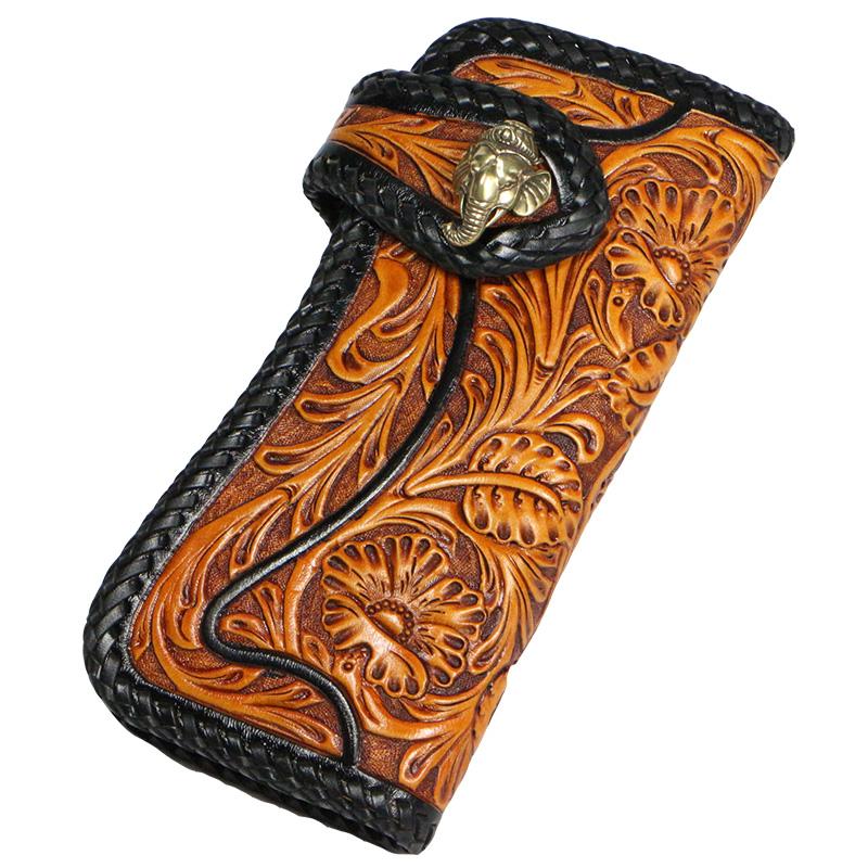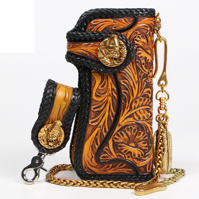 Style: Handmade Mens Cool Tooled Floral Leather Chain Wallet Biker Trucker Wallet with Chain