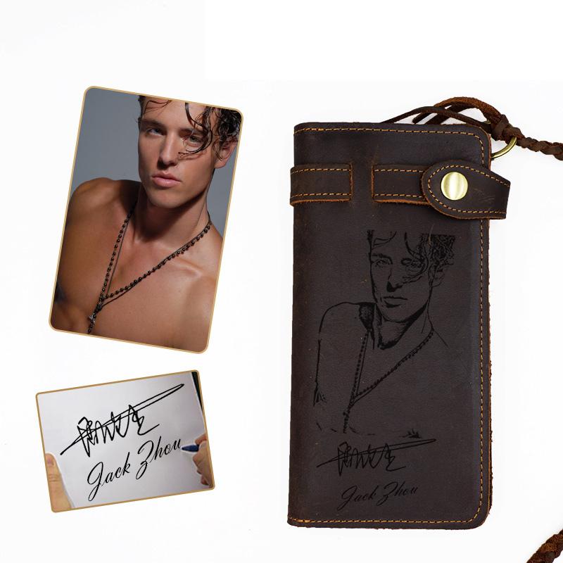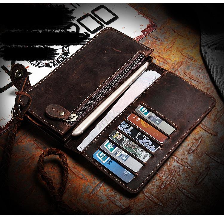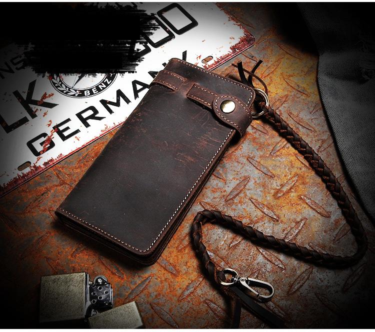 Design: Leather Mens Bifold Long Biker Wallets Biker Chain Wallet Long Trucker Wallet for Men