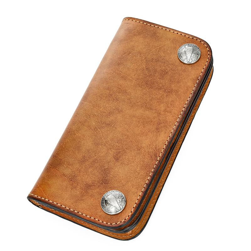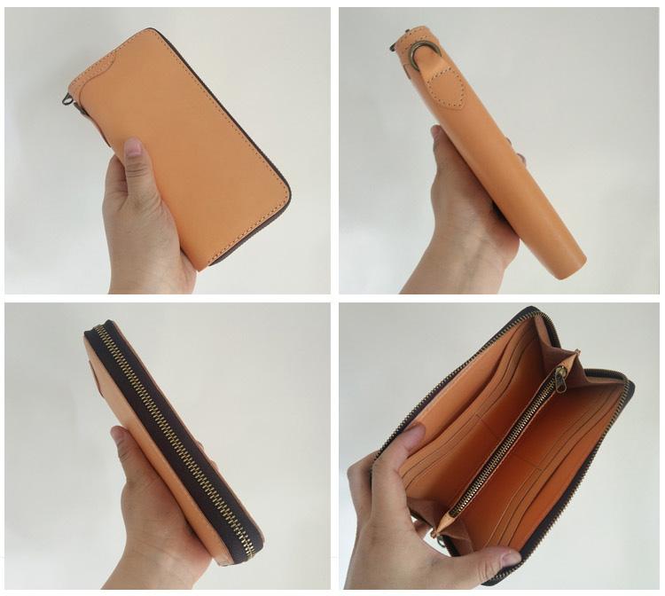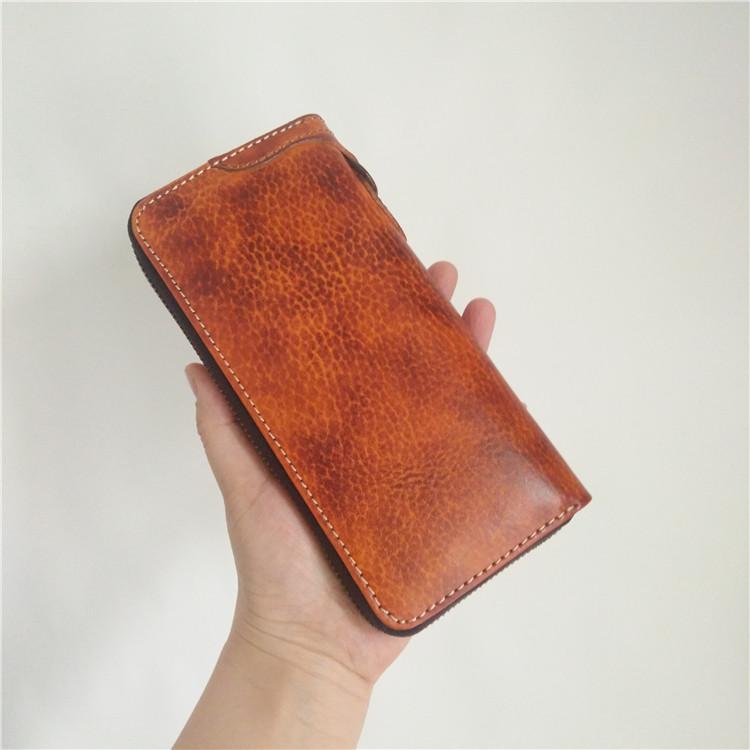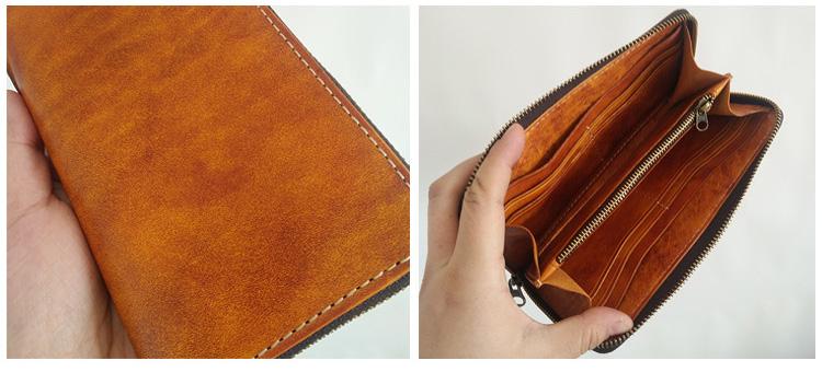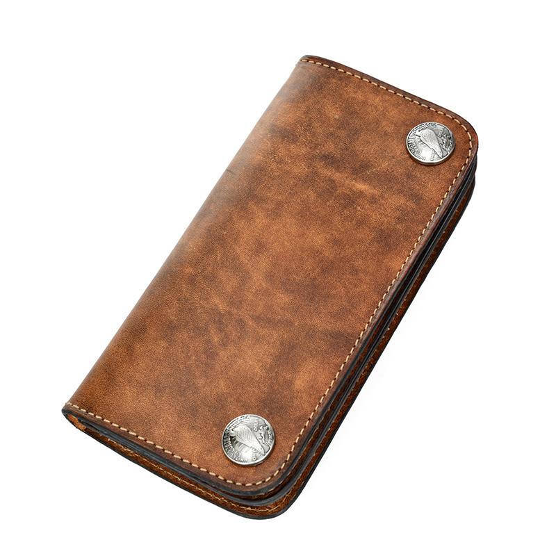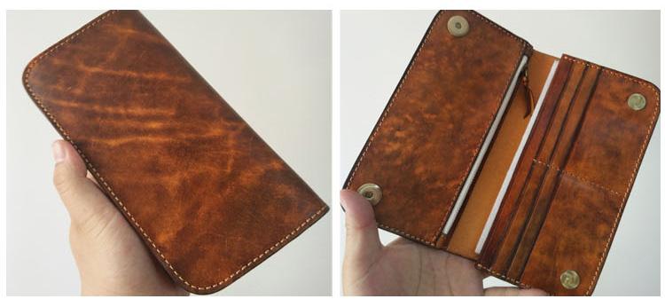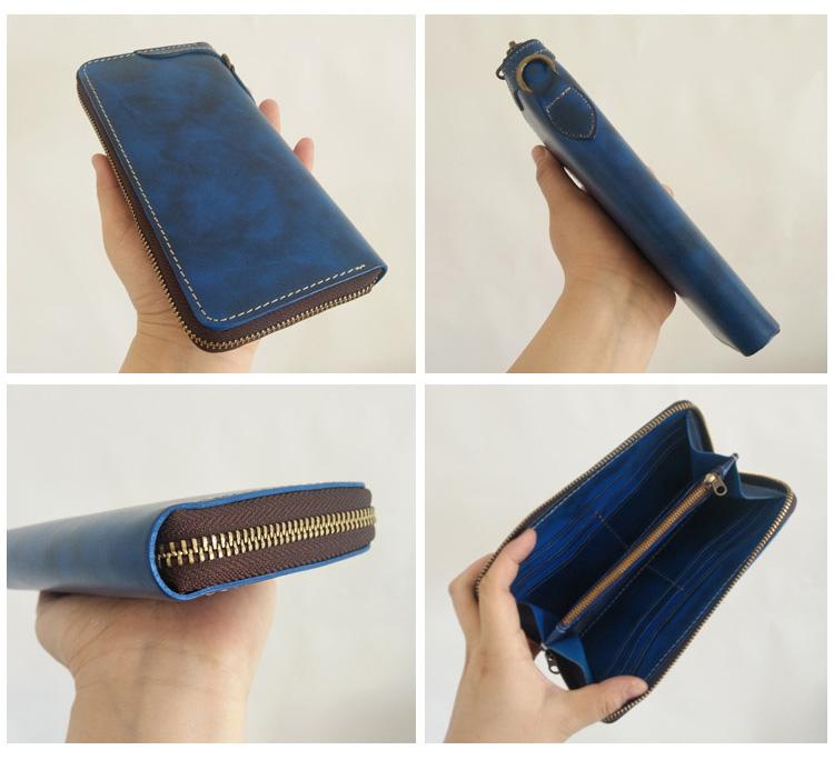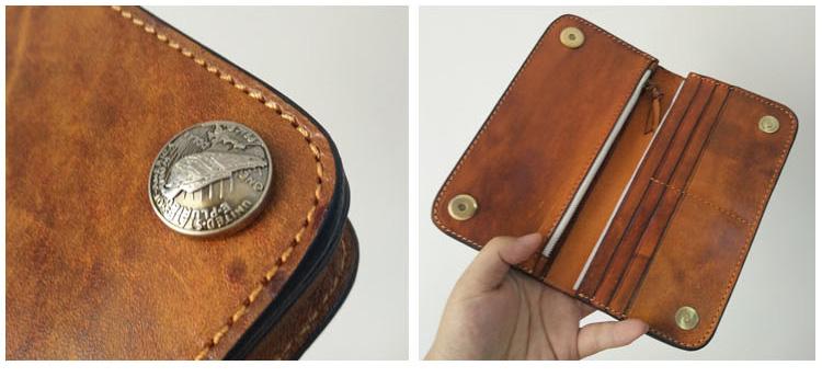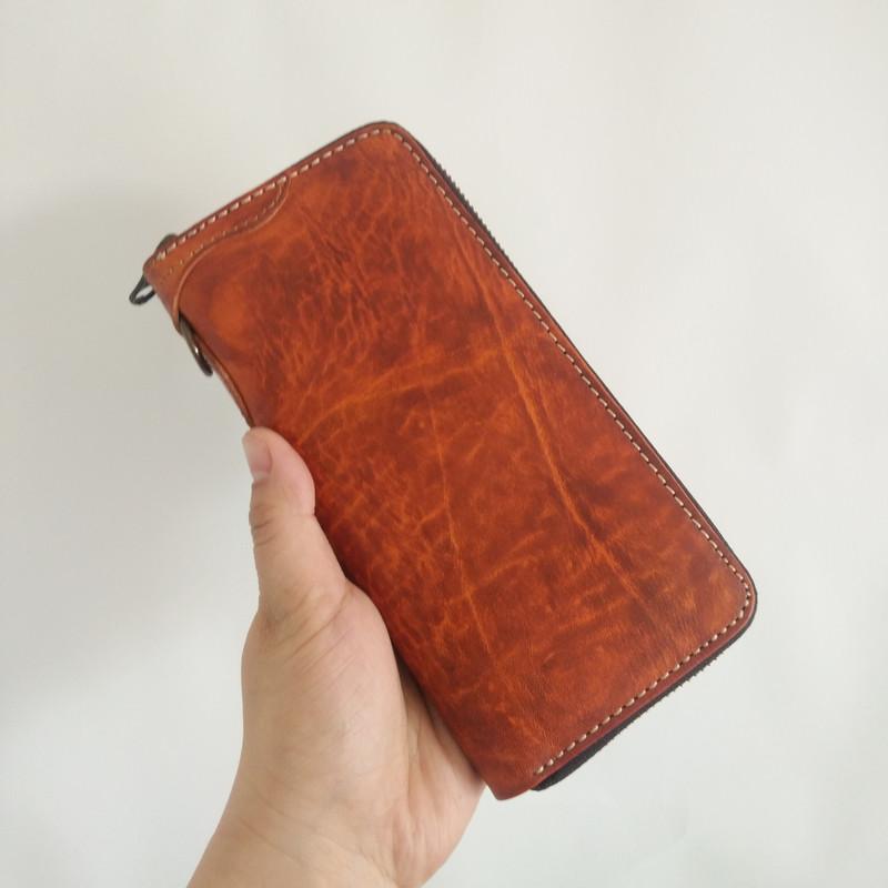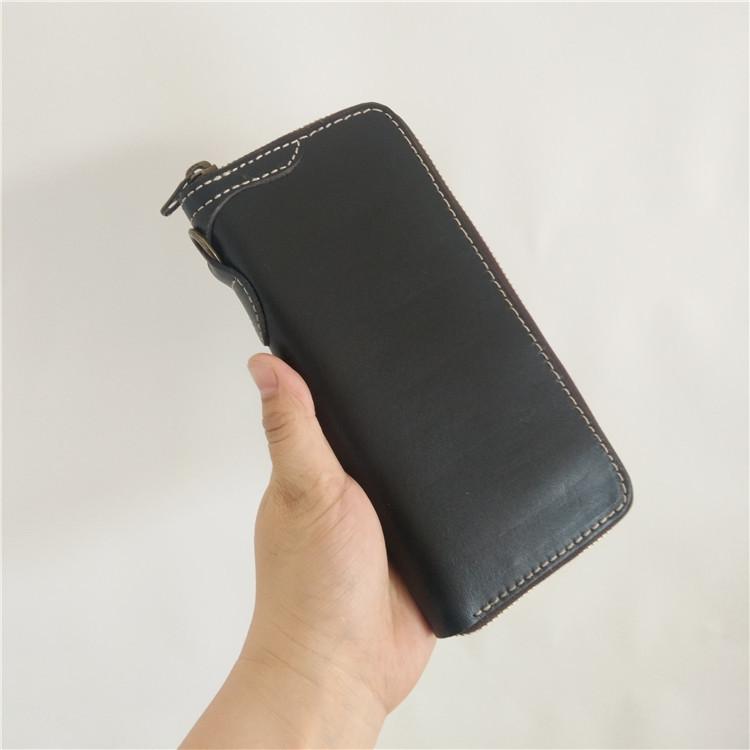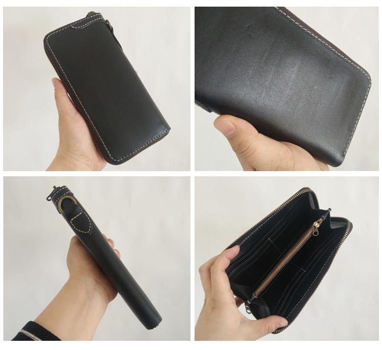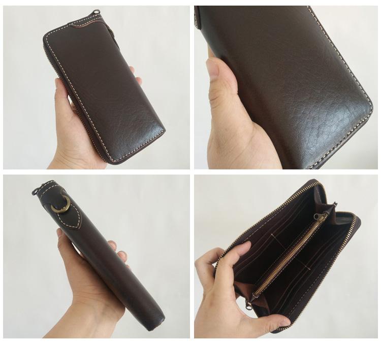 Style: Handmade Mens Long Biker Wallet with Chain Cool Zipper Leather Biker Chain Wallet