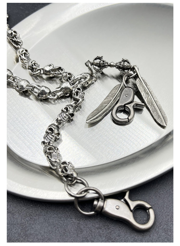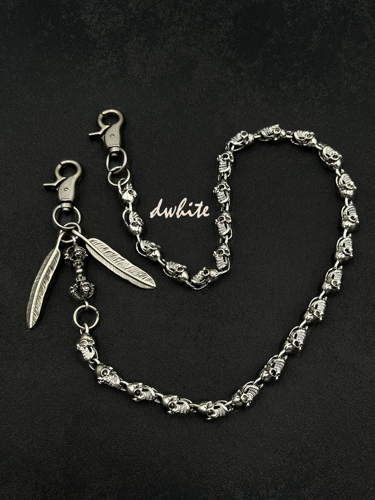 Built to last and designed to intimidate, this heavy-duty Skull Chain for Wallet is the ultimate accessory for defining your style. The zinc alloy construction ensures durability, while the intricate skull links and dangling feather accents create a look that’s both menacing and meticulously crafted. Whether you’re hitting a concert, a bike rally, or just expressing your day-to-day defiance, this chain makes it clear you don’t follow the rules—you set them.
