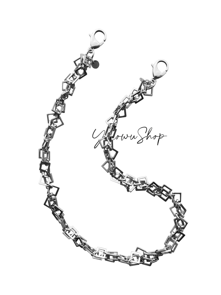 The Long Wallet Square Chain represents a new direction in accessory design—where mathematical precision meets wearable art. Each square link connects seamlessly to create a chain that appears both deliberately structured and wonderfully organic. The stainless steel construction ensures lasting quality, while the geometric pattern catches light from multiple angles, creating a dynamic visual effect that changes with movement.