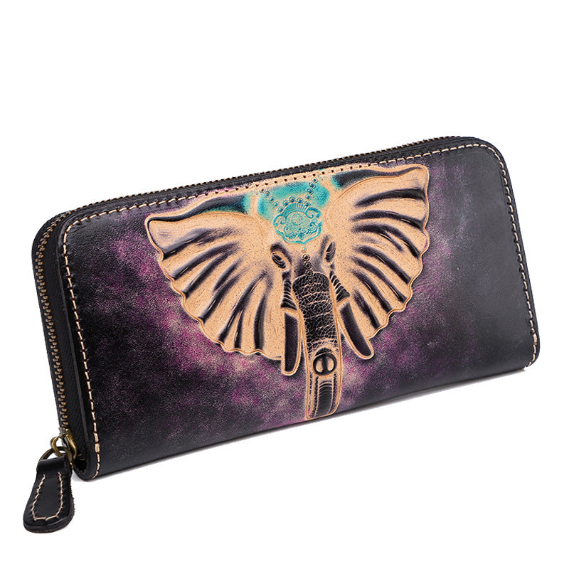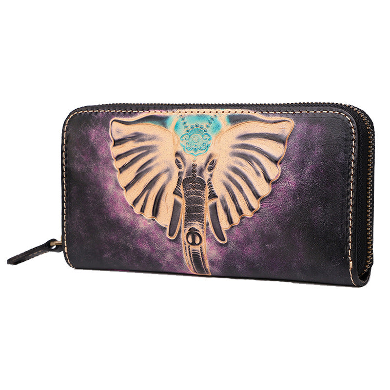 Design: Badass Black Leather Men's Long Biker Handmade Wallet Black Buddha Tooled Zipper Long Wallets For Men