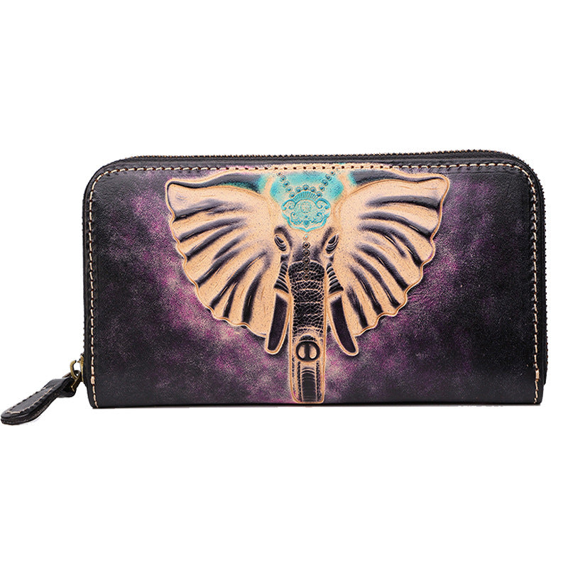 Style: Badass Black Leather Men's Long Biker Handmade Wallet Black Buddha Tooled Zipper Long Wallets For Men