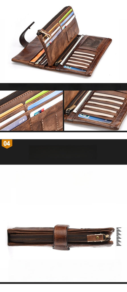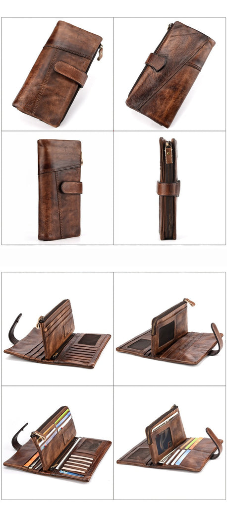 The revolutionary feature of this exceptional Leather Wallet with Buckle for Men is its detachable center insert, which can be easily removed via zipper to function as a standalone card holder. This intelligent design allows you to reduce the wallet's thickness for different occasions while keeping your essentials organized. The insert itself contains 7 card slots, 1 zippered pocket, 1 bill compartment, and even 2 SIM card slots—providing unparalleled versatility for travel, work, or daily use. Secured with a rugged leather buckle closure, this Buckle Mens Wallet That Holds A Lot of Cards combines vintage aesthetics with modern functionality.