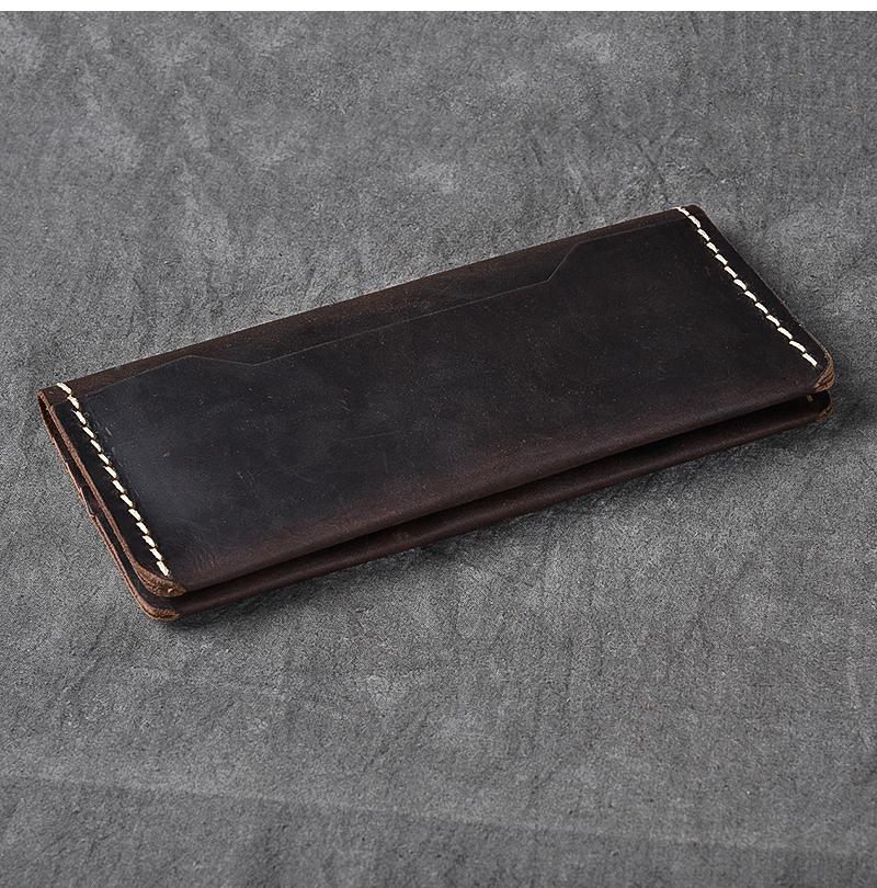 Design: Dark Brown Leather Mens Long Wallet Bifold Brown Clutch Phone Wallet For Men