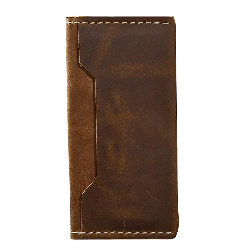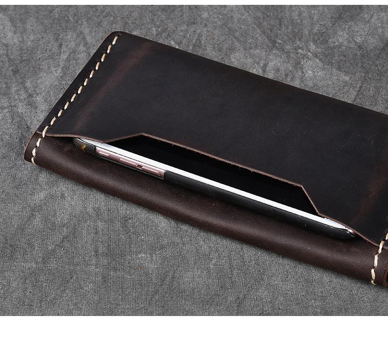 Style: Dark Brown Leather Mens Long Wallet Bifold Brown Clutch Phone Wallet For Men