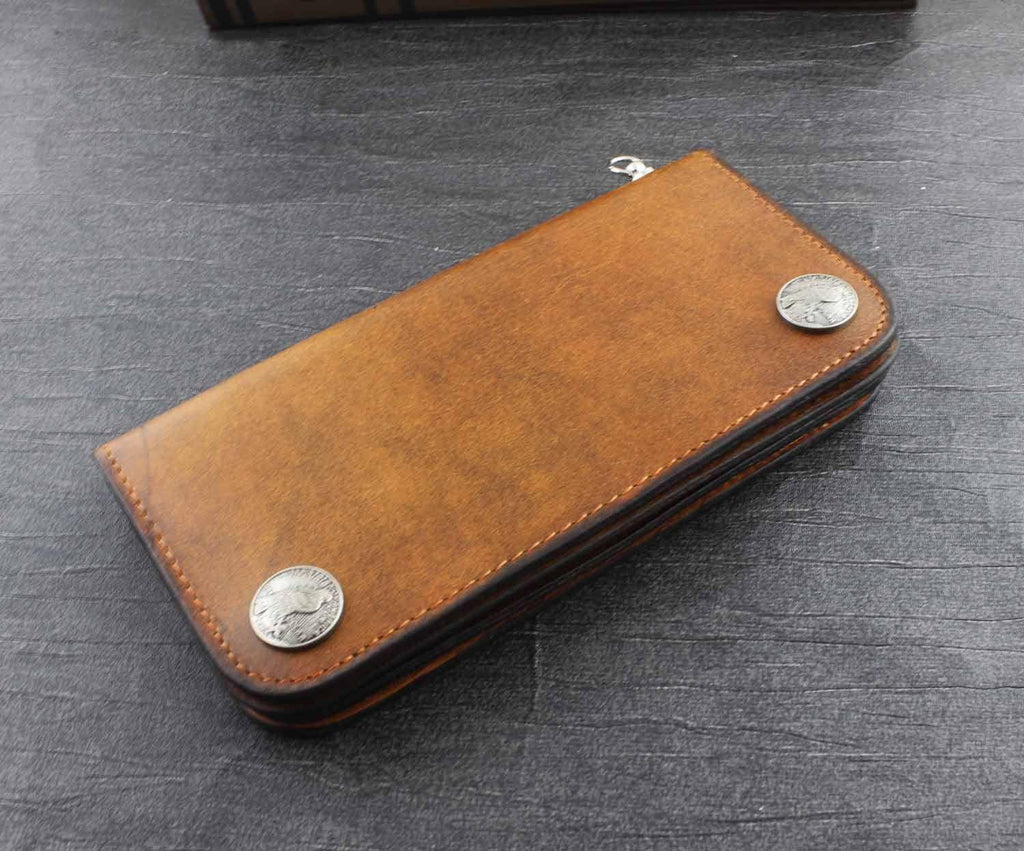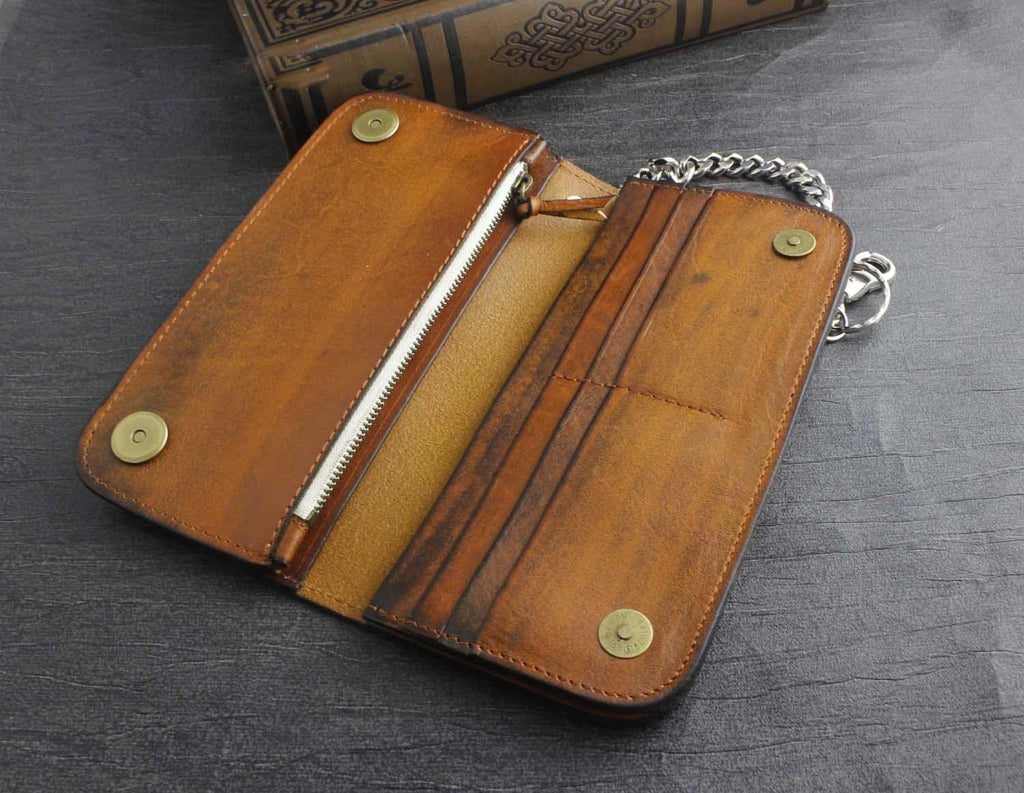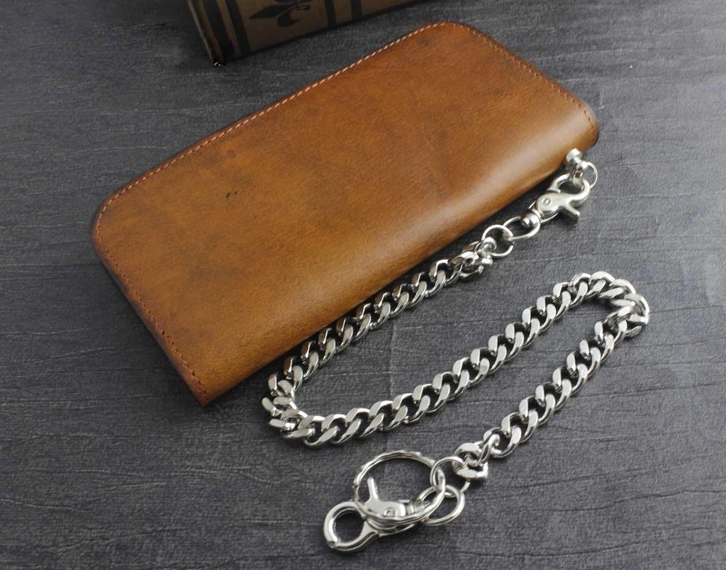 Design: Genuine Leather Mens Chain Wallet Biker Wallet Cool Leather Wallet Long Trucker Wallets for Men