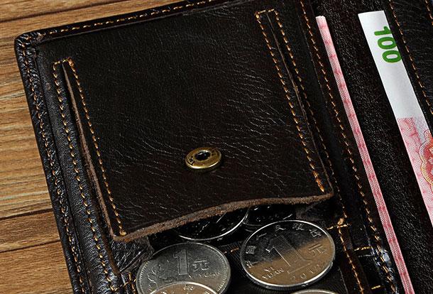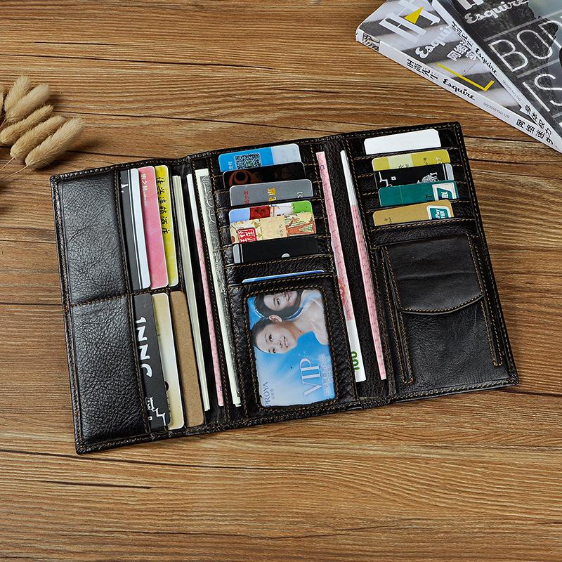 Design: Genuine Leather Mens Trifold Wallet Coffee Long Wallet for Men with Multi Cards