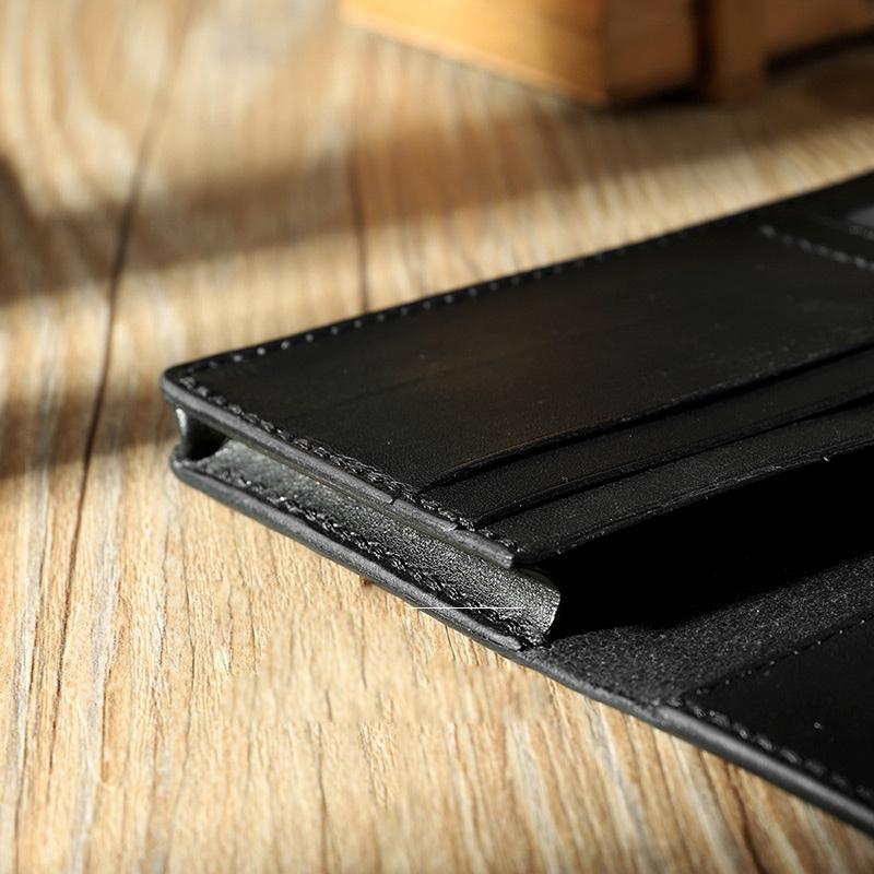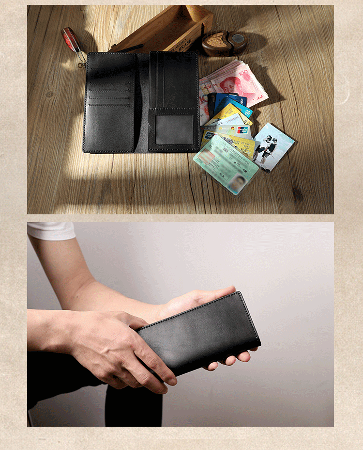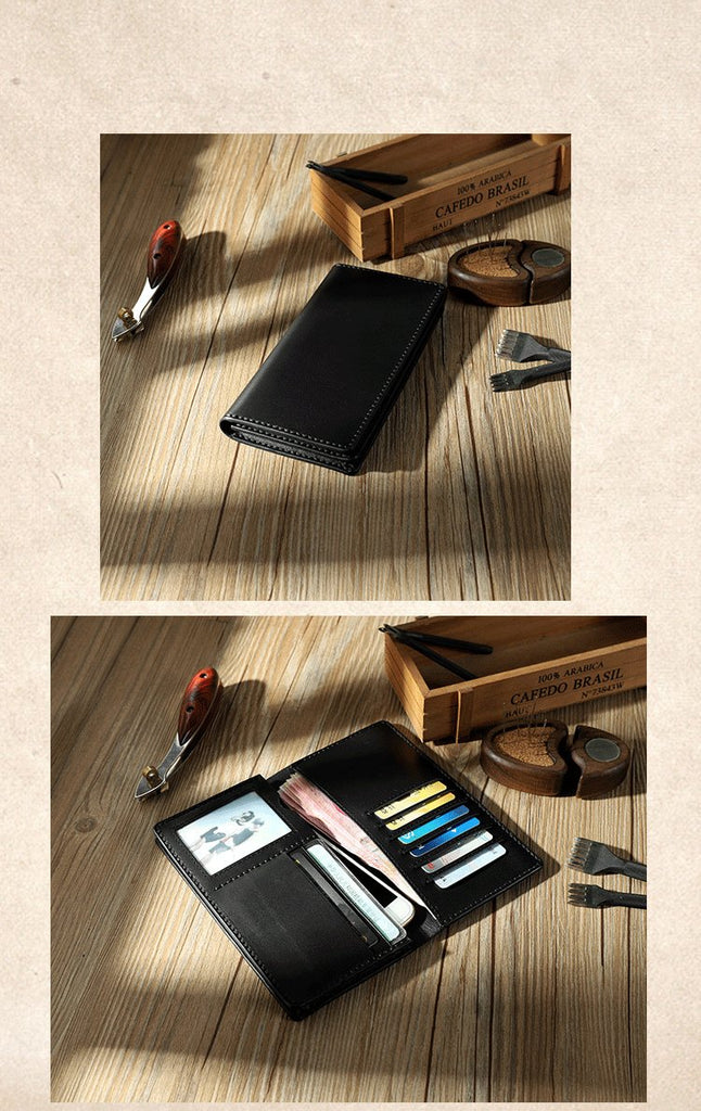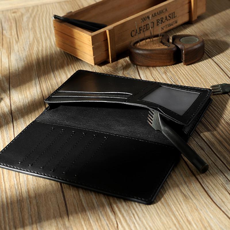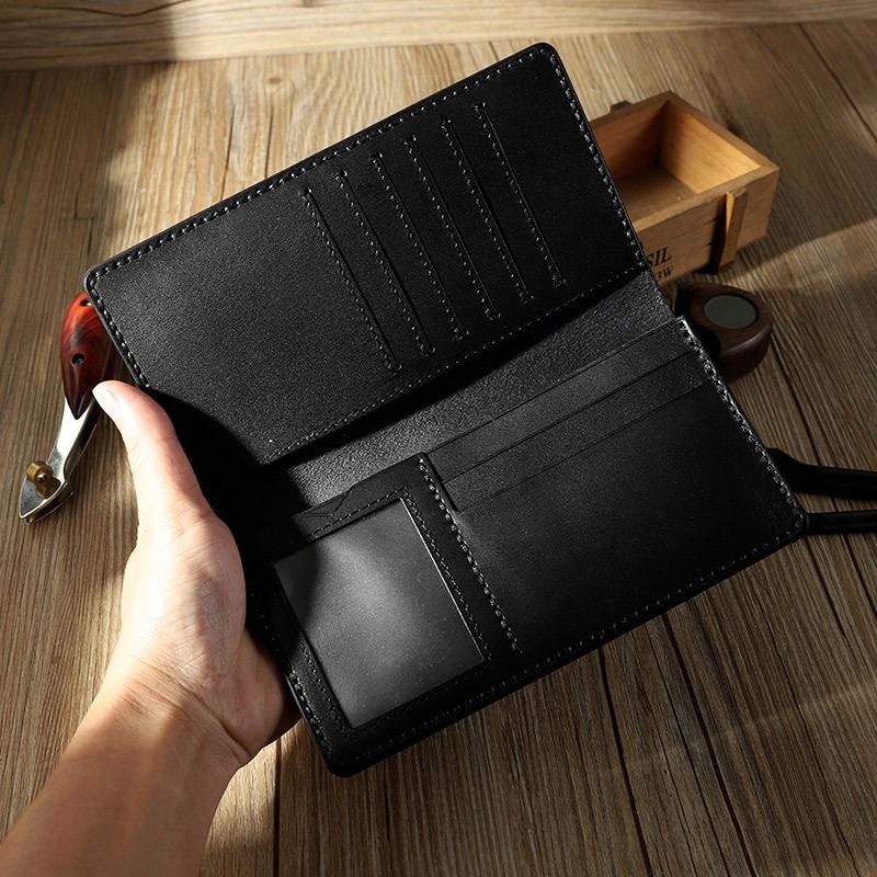 Style: Handmade Black Leather Mens Bifold Long Wallets Personalized Black Checkbook Wallet for Men