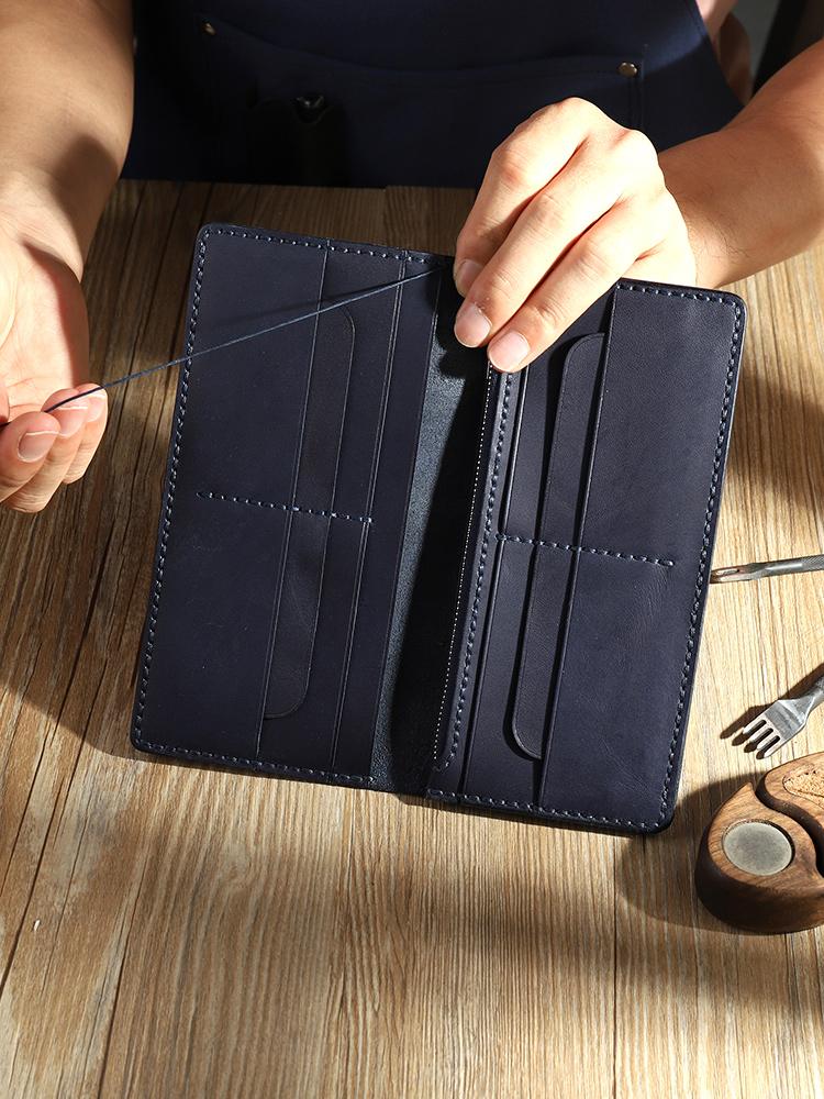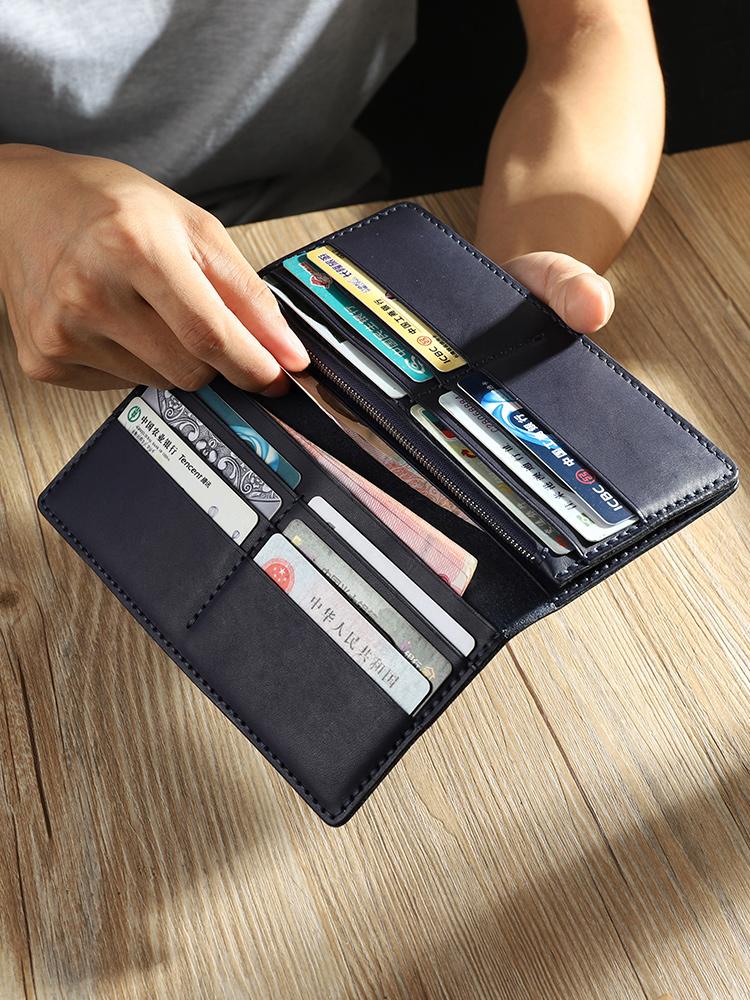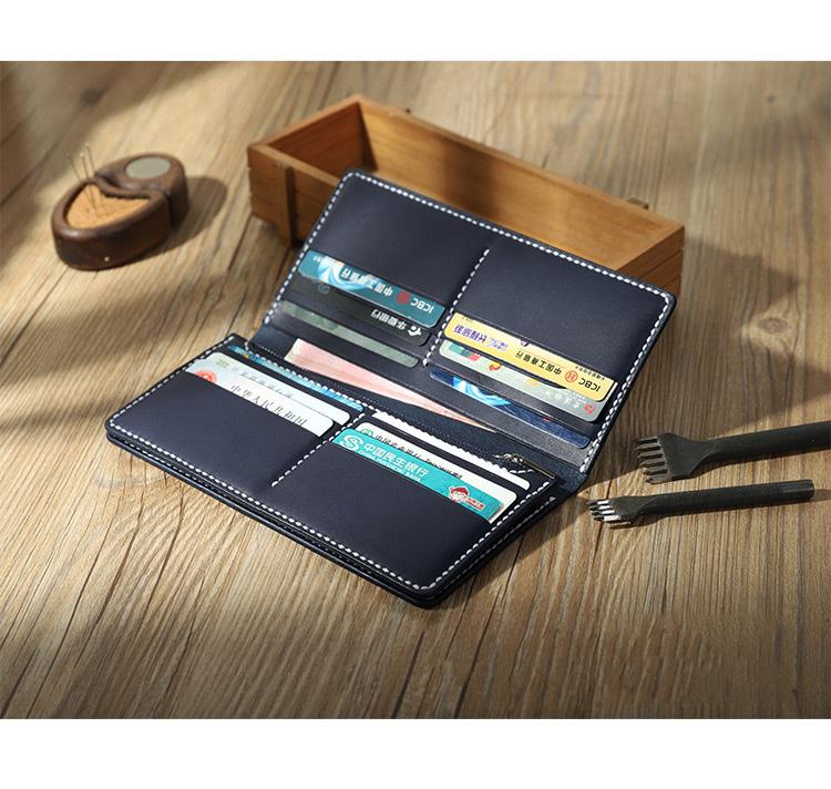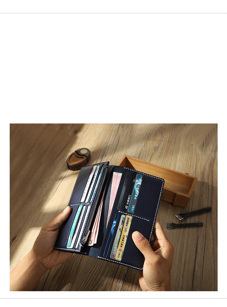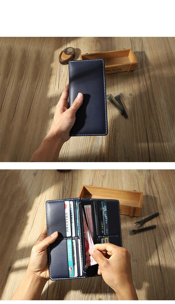 Style: Handmade Black Mens Bifold Long Wallets Personalized Black Leather Checkbook Wallets for Men