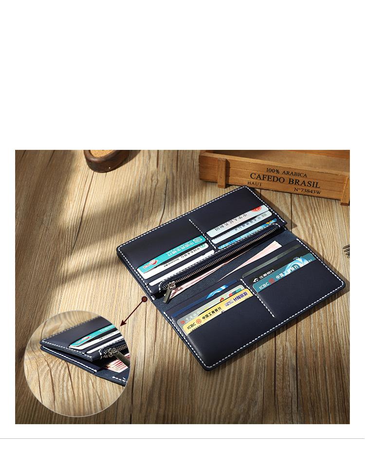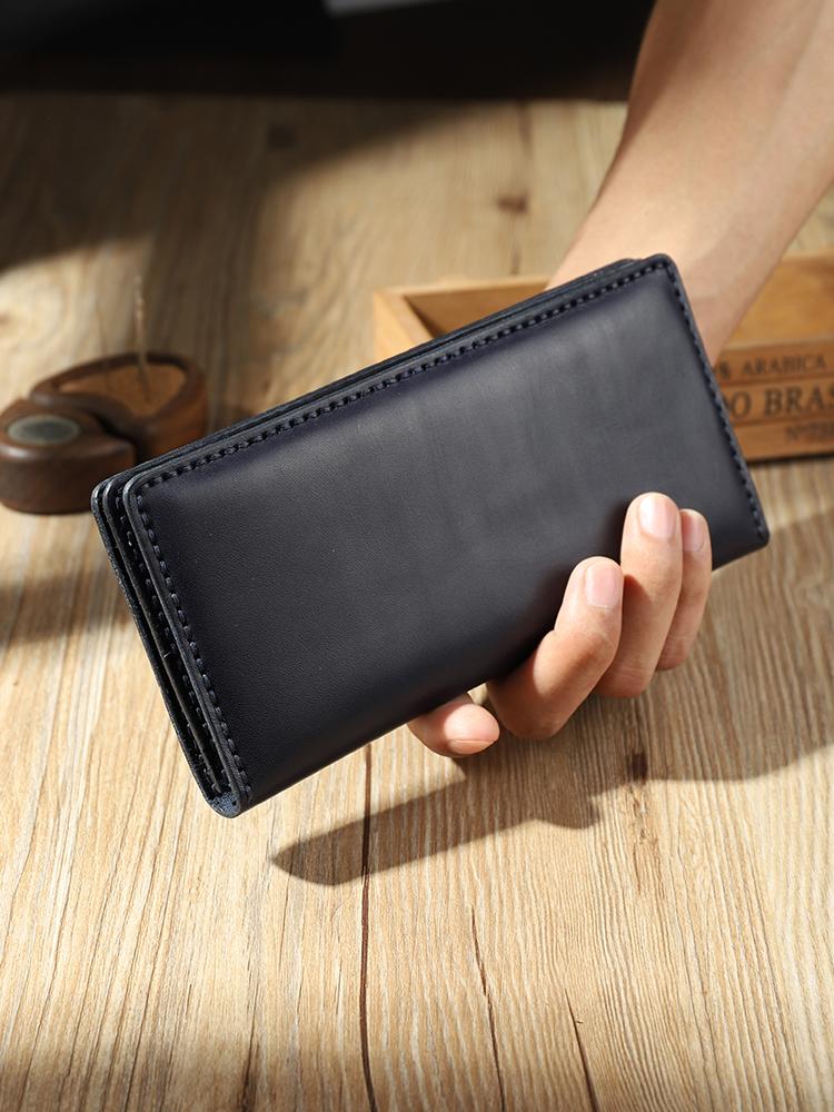 Design: Handmade Black Mens Bifold Long Wallets Personalized Black Leather Checkbook Wallets for Men