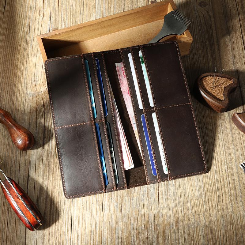 Style: Handmade Black Slim Leather Mens Bifold Long Wallet Personalized Black Checkbook Wallets for Men