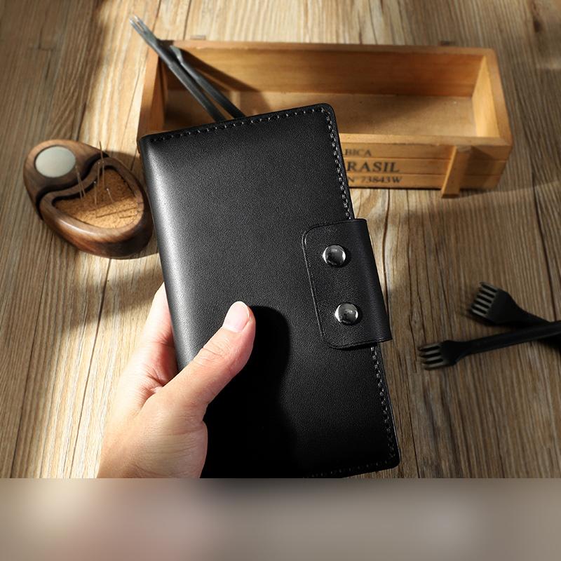Style: Handmade Coffee Leather Mens Bifold Long Wallets Personalized Black Checkbook Leather Wallets for Men