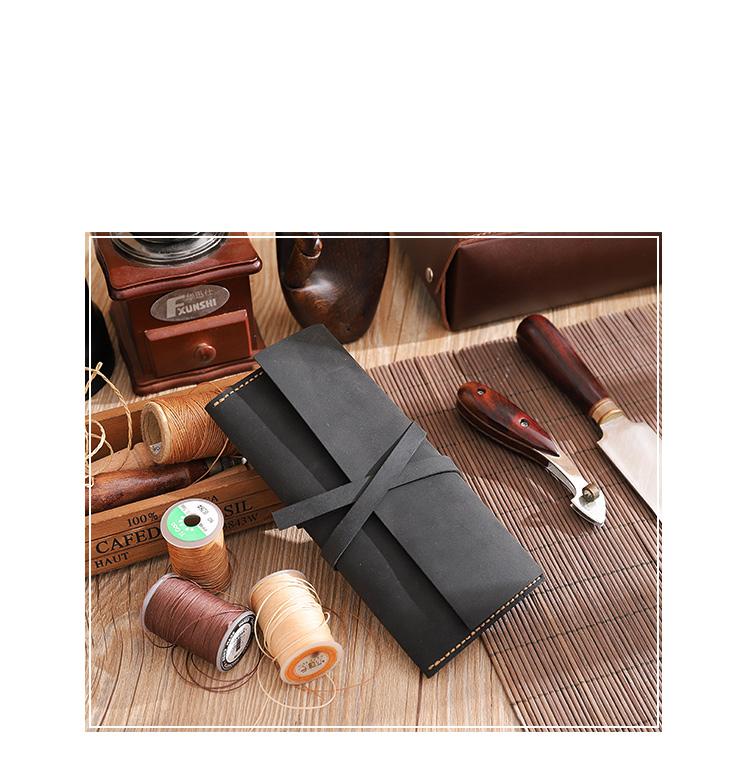 Design: Handmade Coffee Leather Womens Long Wallets Personalized Wrap Tie Checkbook Wallet for Men