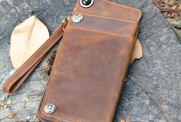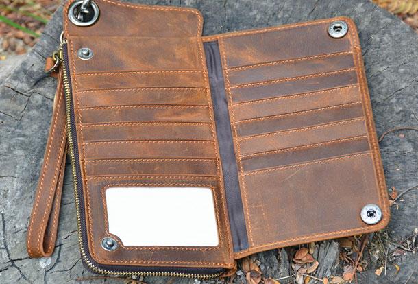 Design: Cool Leather Mens Biker Wallet Long Wallet Bifold Chain Wallet For Men