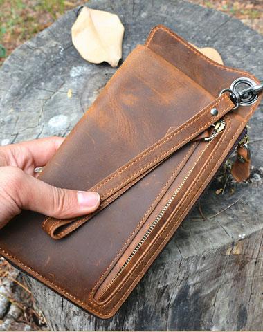 Style: Cool Leather Mens Biker Wallet Long Wallet Bifold Chain Wallet For Men