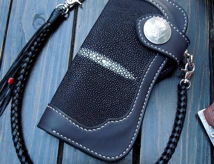 Design: Handmade Leather Biker Wallet Mens Cool Chain Wallet Trucker Wallet with Chain