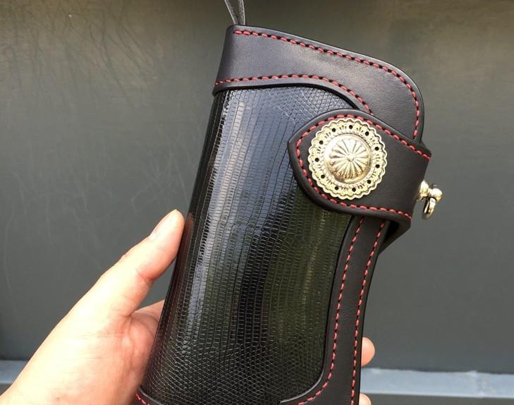Design: Handmade Leather Biker Wallet Mens Cool Chain Wallet Trucker Wallet with Chain