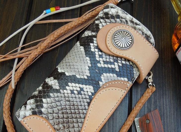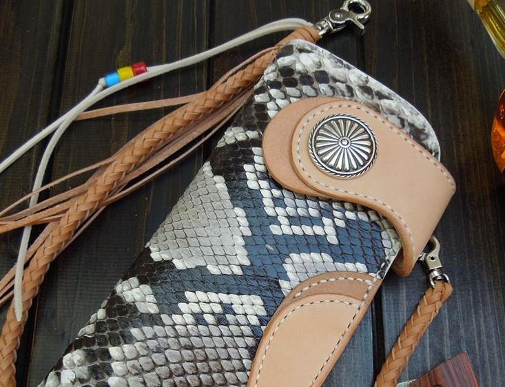 Design: Handmade Leather Biker Wallet Mens Cool Chain Wallet Trucker Wallet with Chain