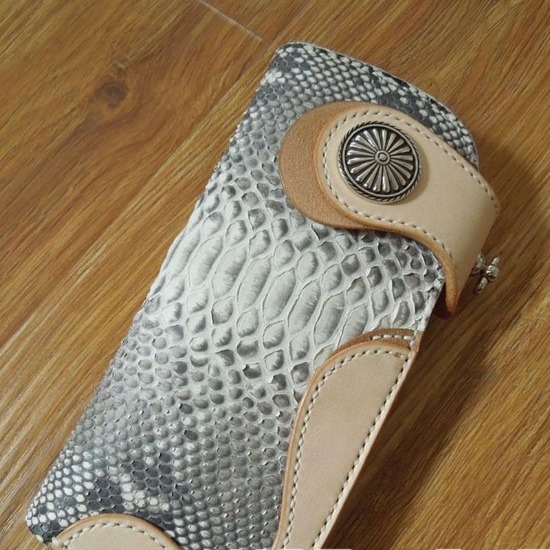 Handmade Leather Long Biker Wallet Mens Cool Chain Wallet Trucker Wallet with Chain