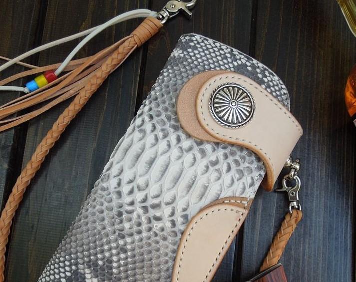 Design: Handmade Leather Biker Wallet Mens Cool Chain Wallet Trucker Wallet with Chain