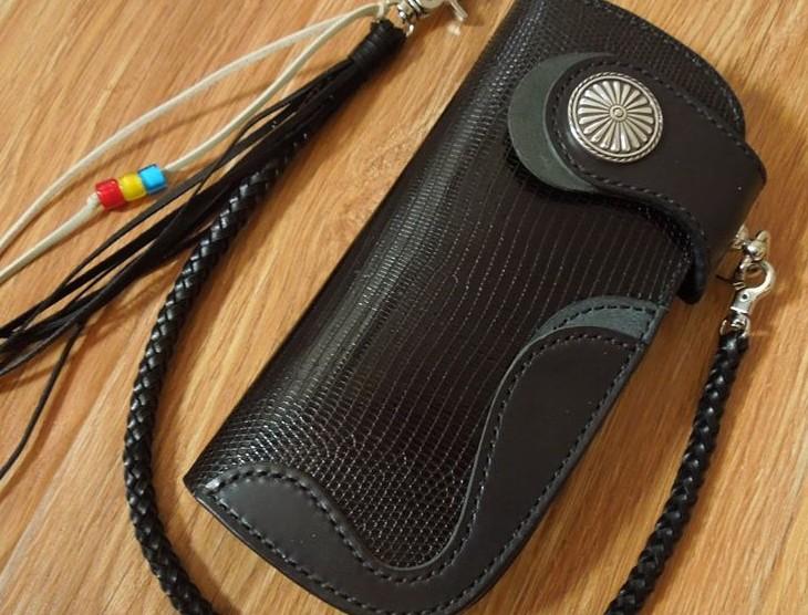 Design: Handmade Leather Biker Wallet Mens Cool Chain Wallet Trucker Wallet with Chain