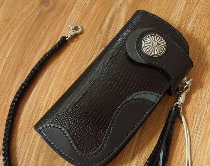 Design: Handmade Leather Biker Wallet Mens Cool Chain Wallet Trucker Wallet with Chain