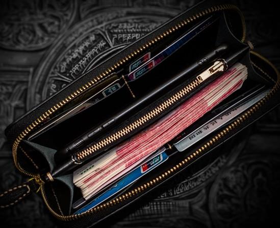 Slots: 2 full size bill slot, 8 card holders, 1 zipper slot