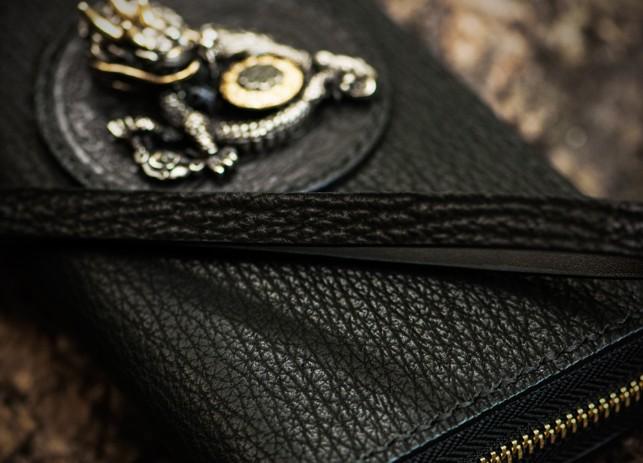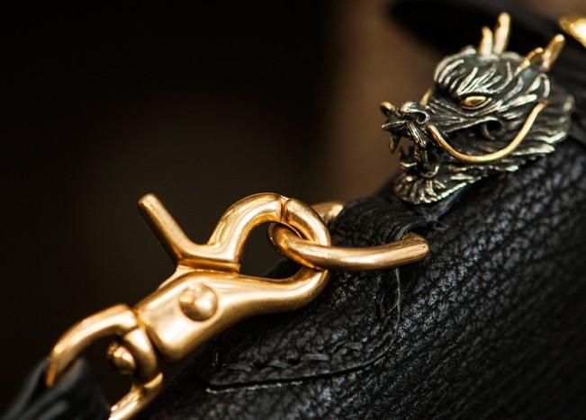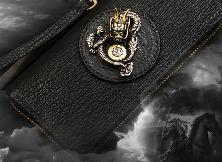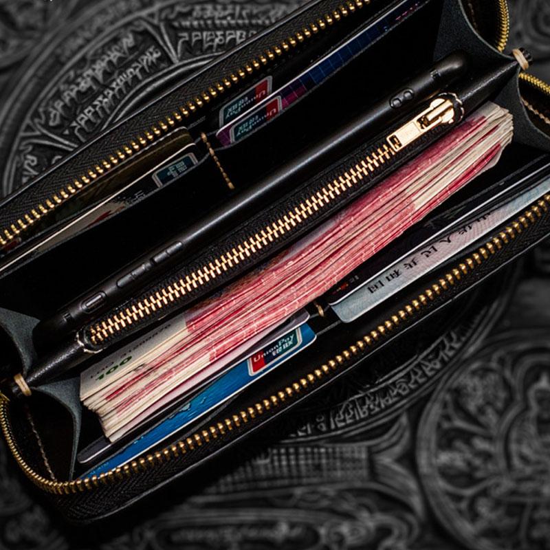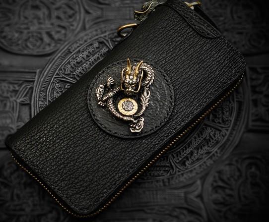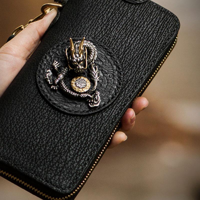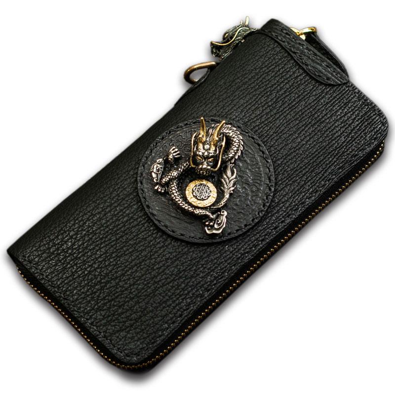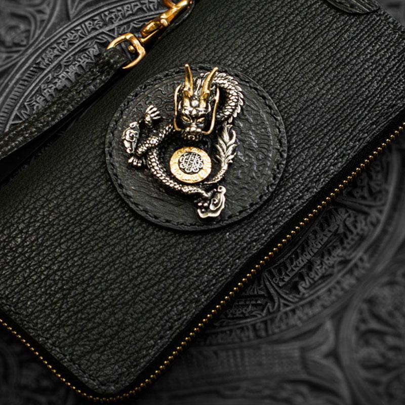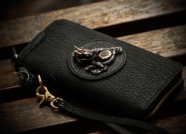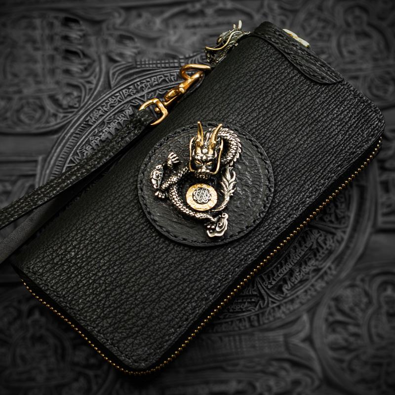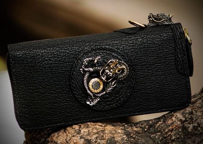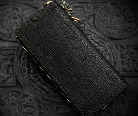 Design: Handmade Leather Black Sharkskin Chain Wallet Mens Biker Wallet Cool Leather Wallet Long Phone Wallets for Men