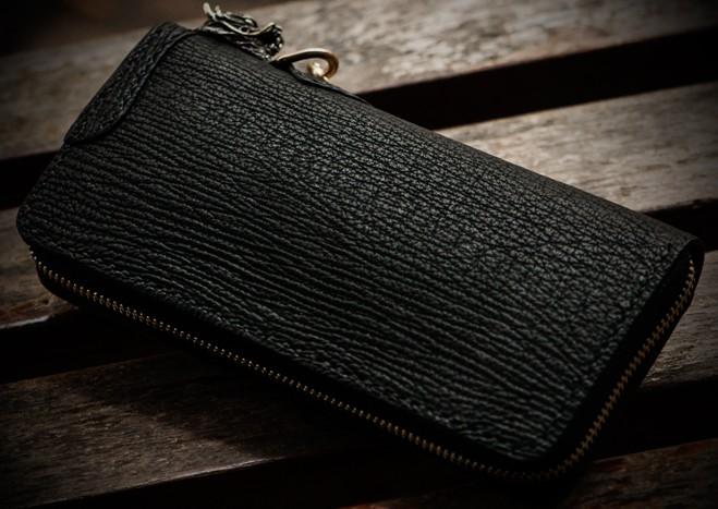 Style: Handmade Leather Black Sharkskin Chain Wallet Mens Biker Wallet Cool Leather Wallet Long Phone Wallets for Men