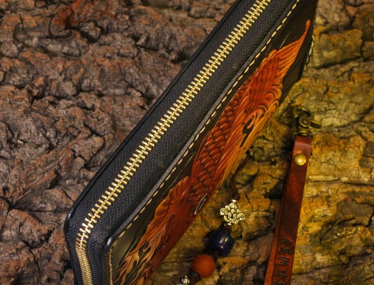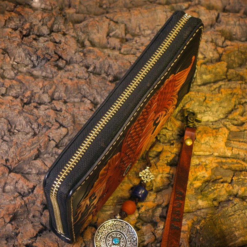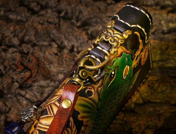 Design: Handmade Leather Carp Mens Chain Biker Wallet Cool Leather Wallet Long Clutch Wallets for Men