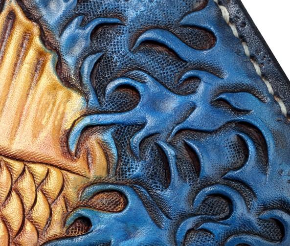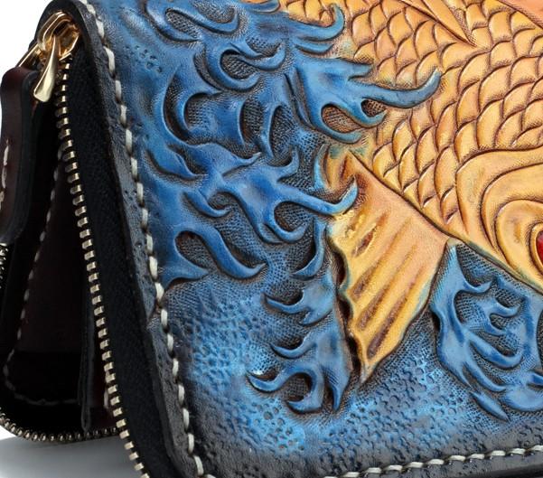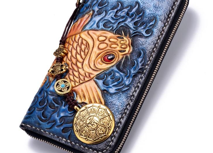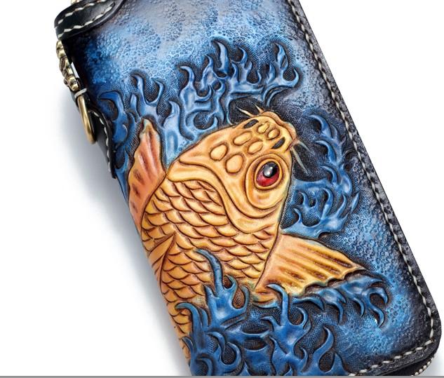 Design: Handmade Leather Carp Mens Chain Biker Wallet Cool Leather Wallet Long Phone Wallets for Men