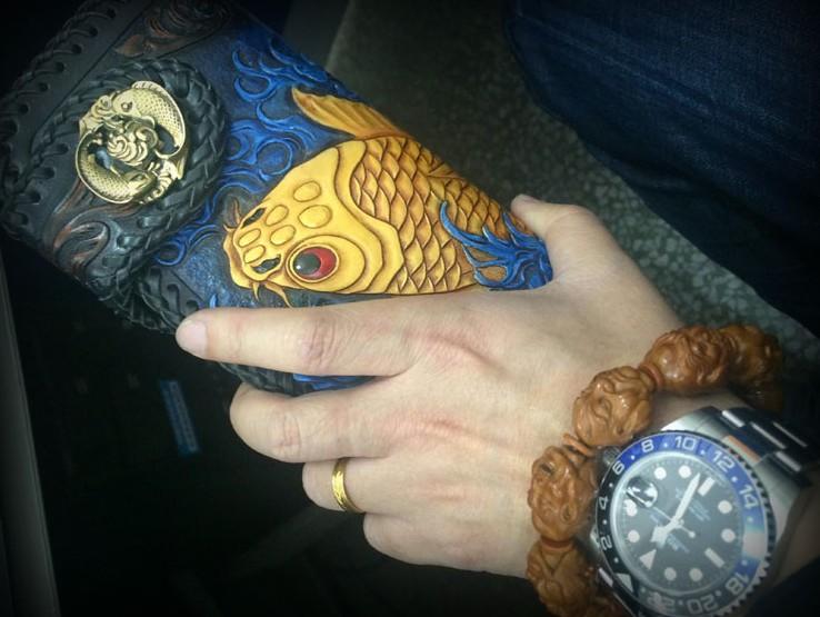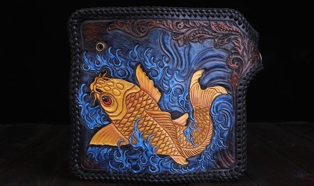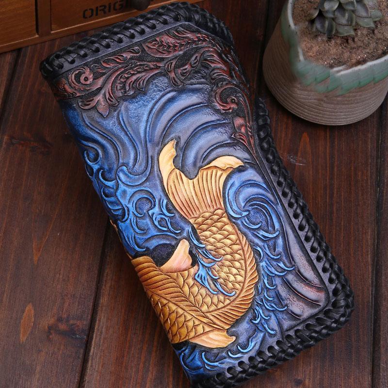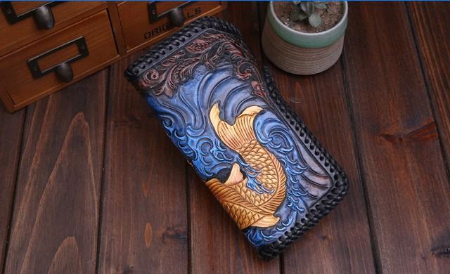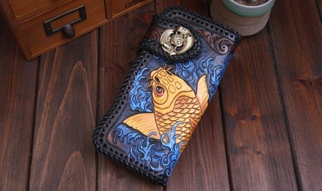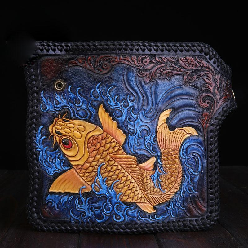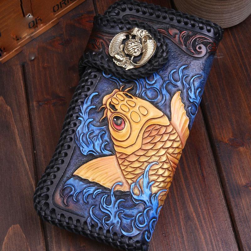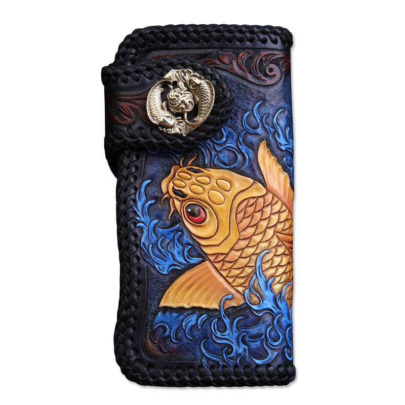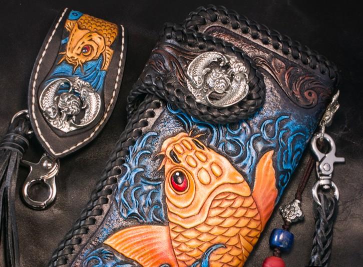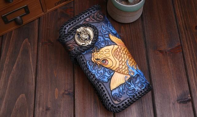 Design: Handmade Leather Carp Mens Chain Biker Wallet Cool Leather Wallet With Chain Wallets for Men