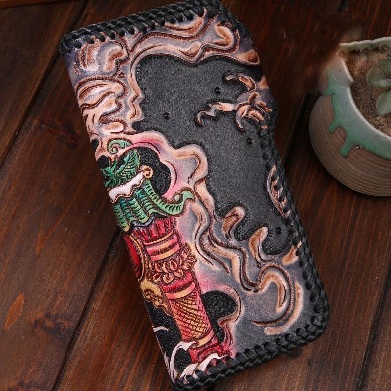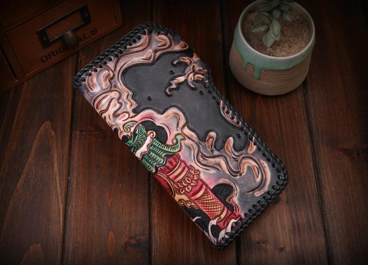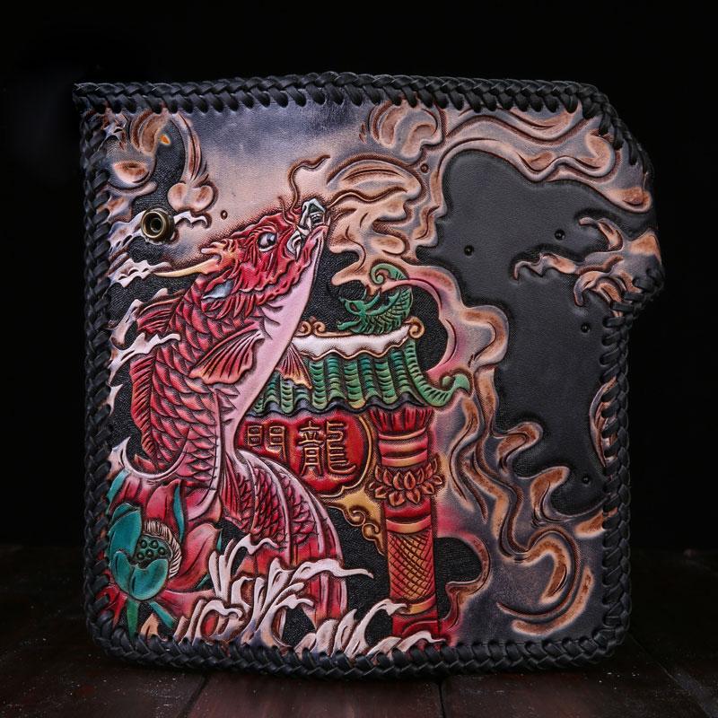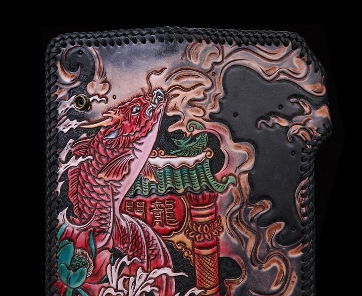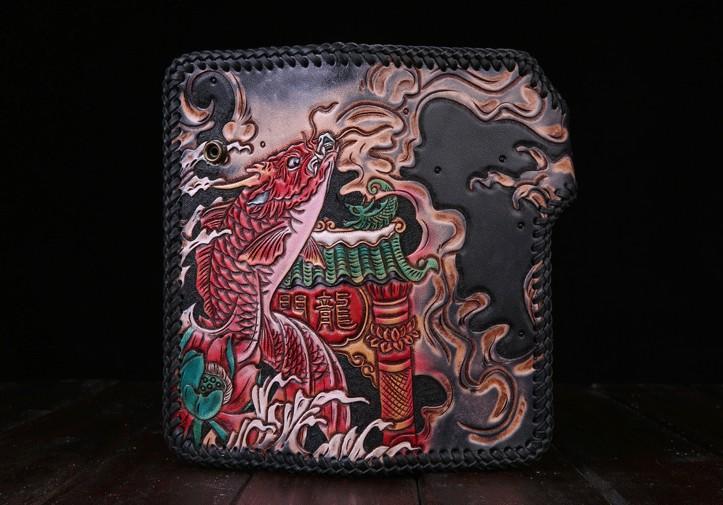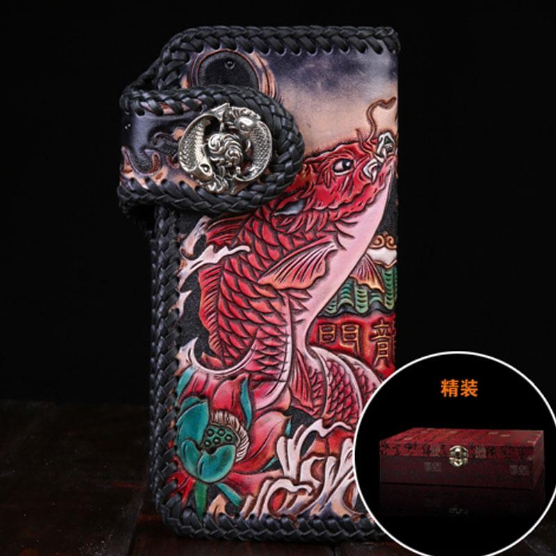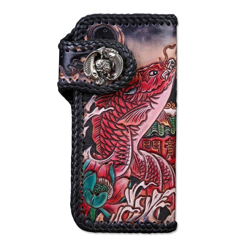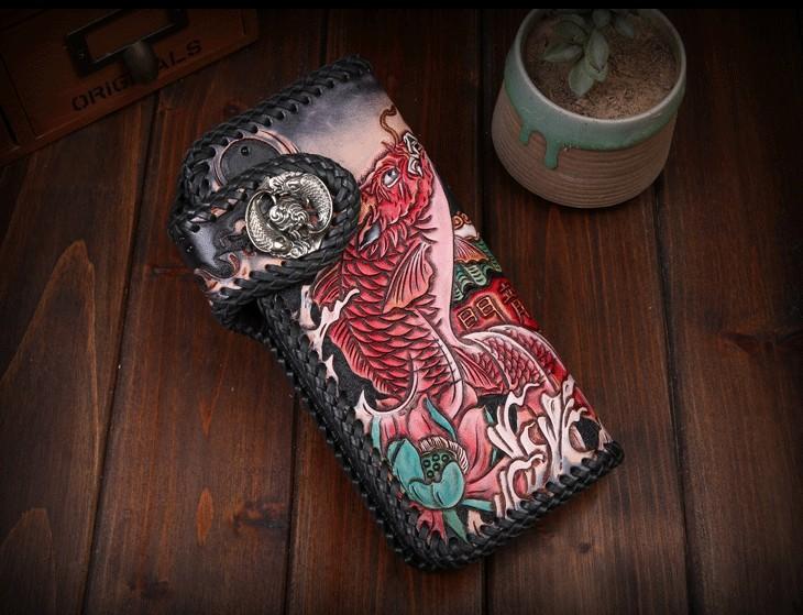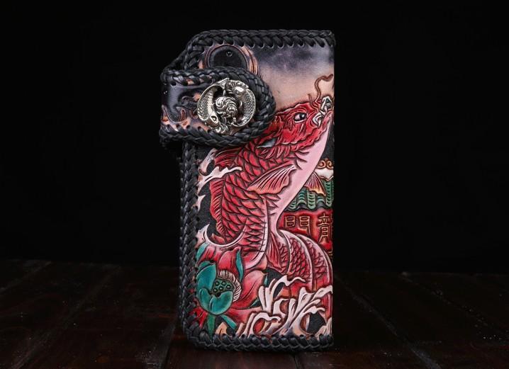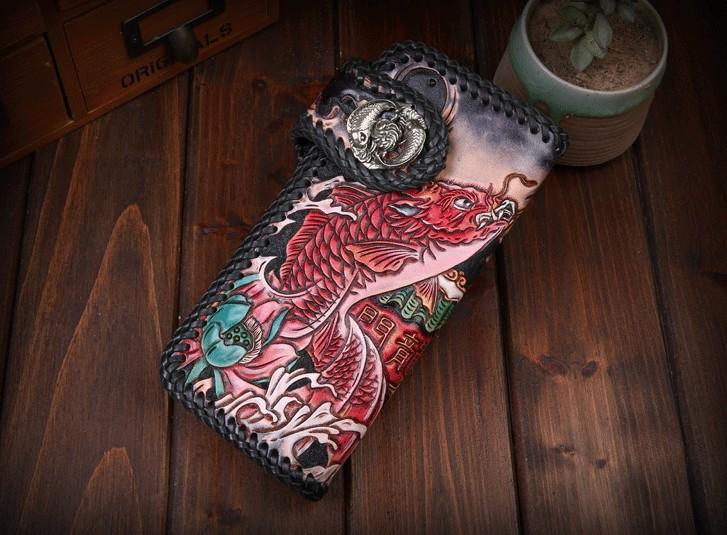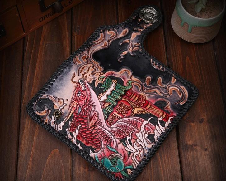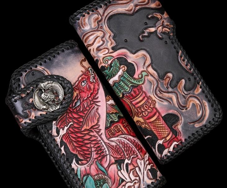 Design: Handmade Leather Carp Mens Chain Biker Wallet Cool Leather Wallet With Chain Wallets for Men