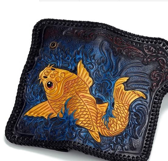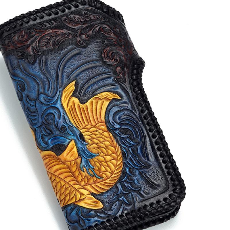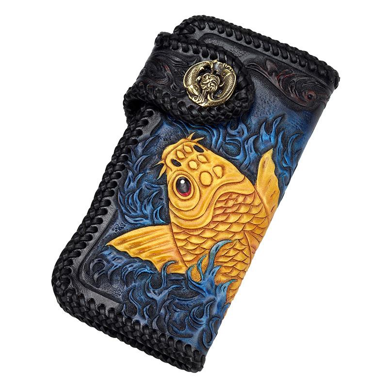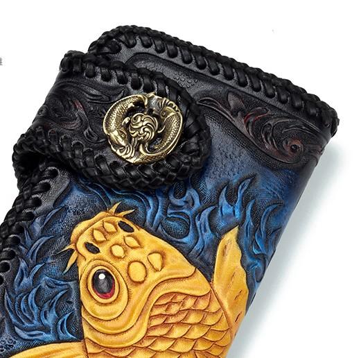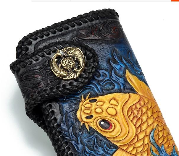 Design: Handmade Leather Carp Mens Chain Biker Wallet Cool Leather Wallet With Chain Wallets for Men