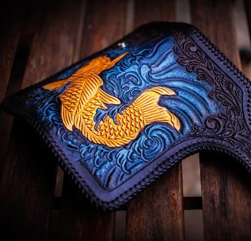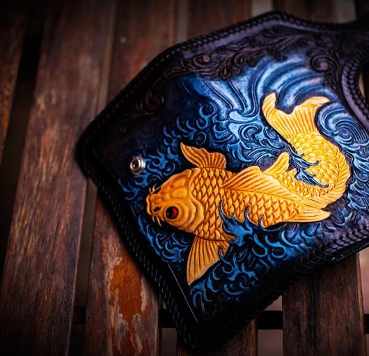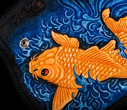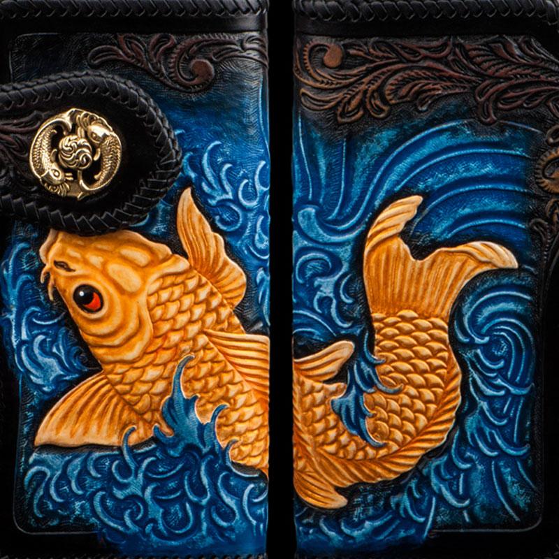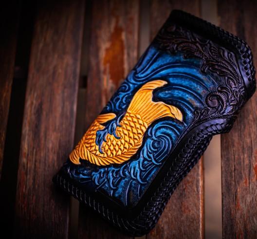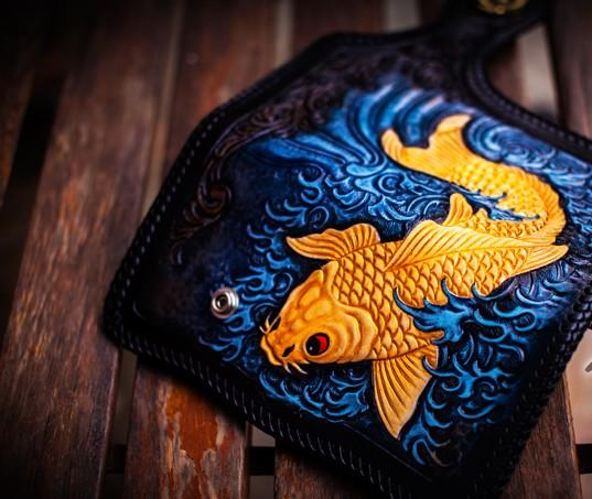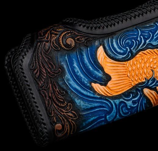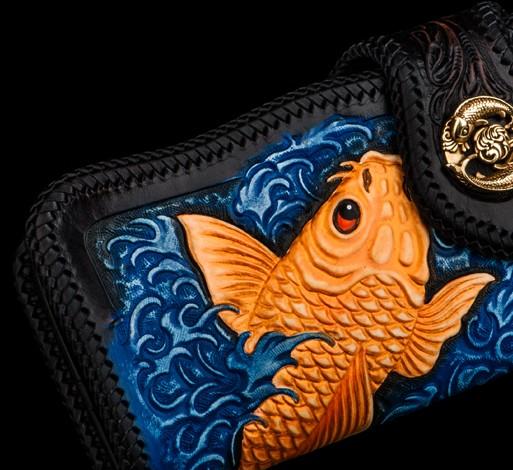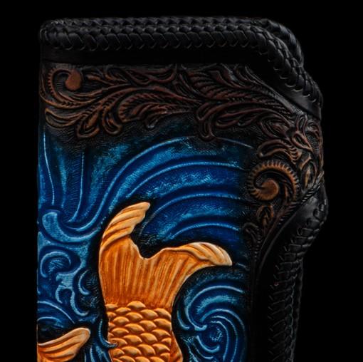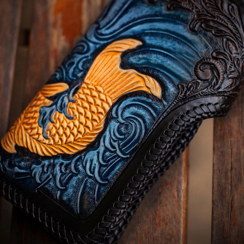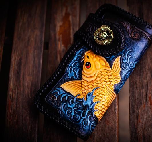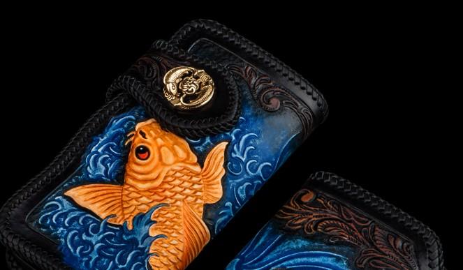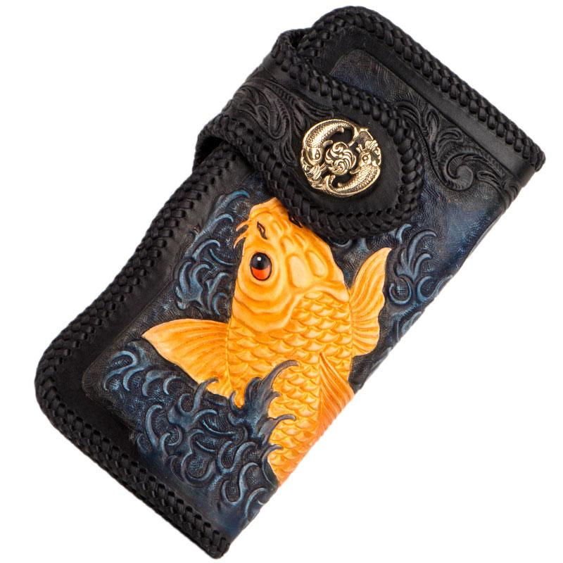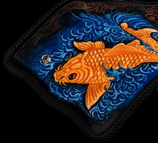 Design: Handmade Leather Carp Mens Chain Biker Wallet Cool Leather Wallet With Chain Wallets for Men