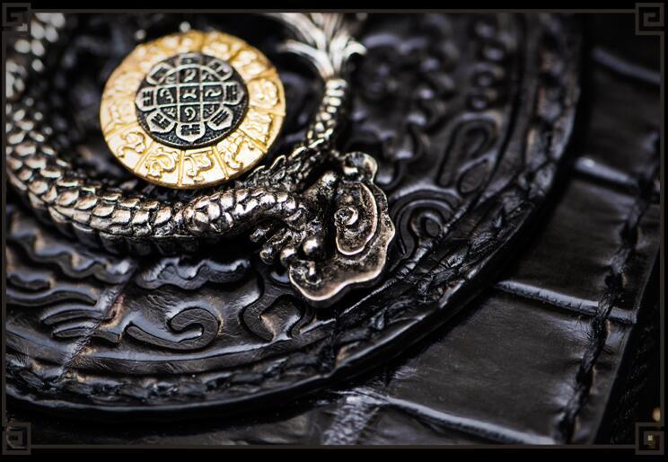Design: Handmade Leather Chinese Dragon Mens Chain Biker Wallet Cool Leather Wallet Long Clutch Wallets for Men